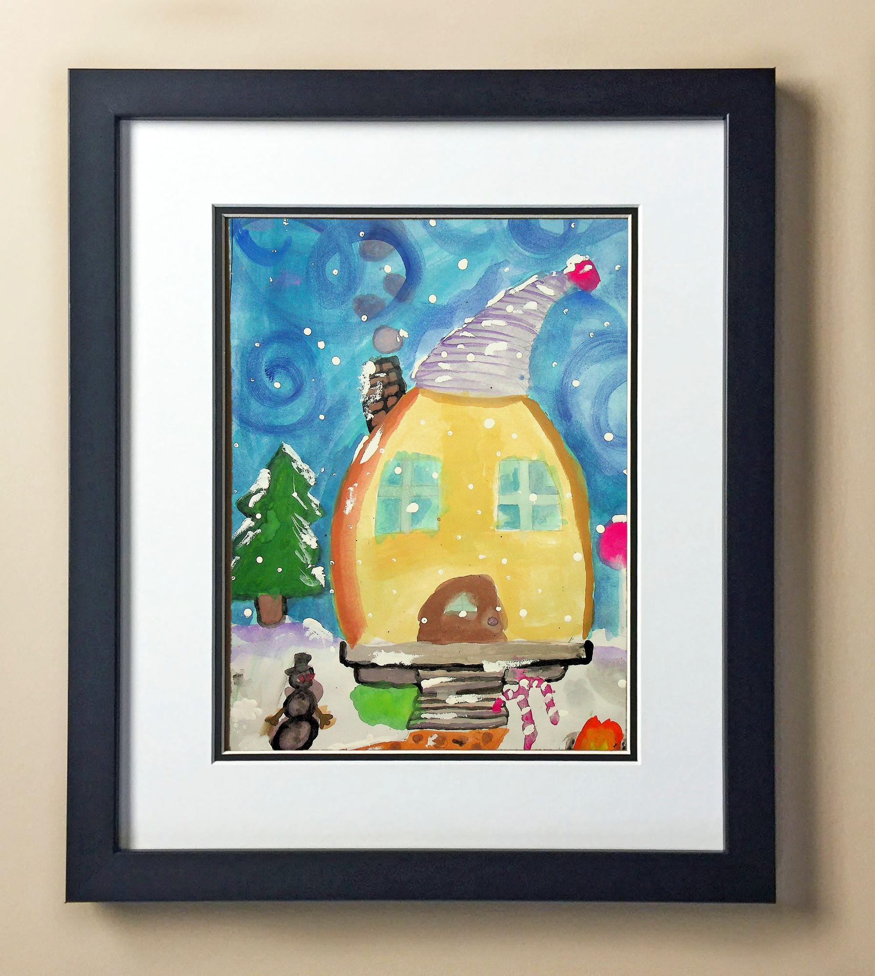 Included with the purchase is the Students Artwork, Frame, double matboard, shatter proof plexiglass, and a ready to hang backerboard with turnbuttons