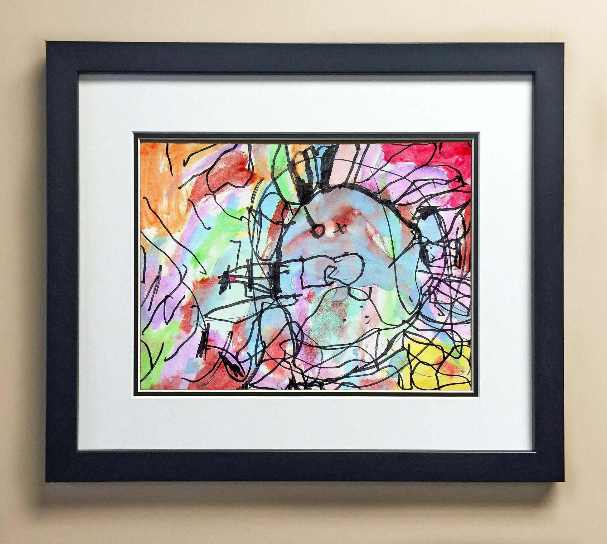 Included with the purchase is the Students Artwork, Frame, double matboard, shatter proof plexiglass, and a ready to hang backerboard with turnbuttons