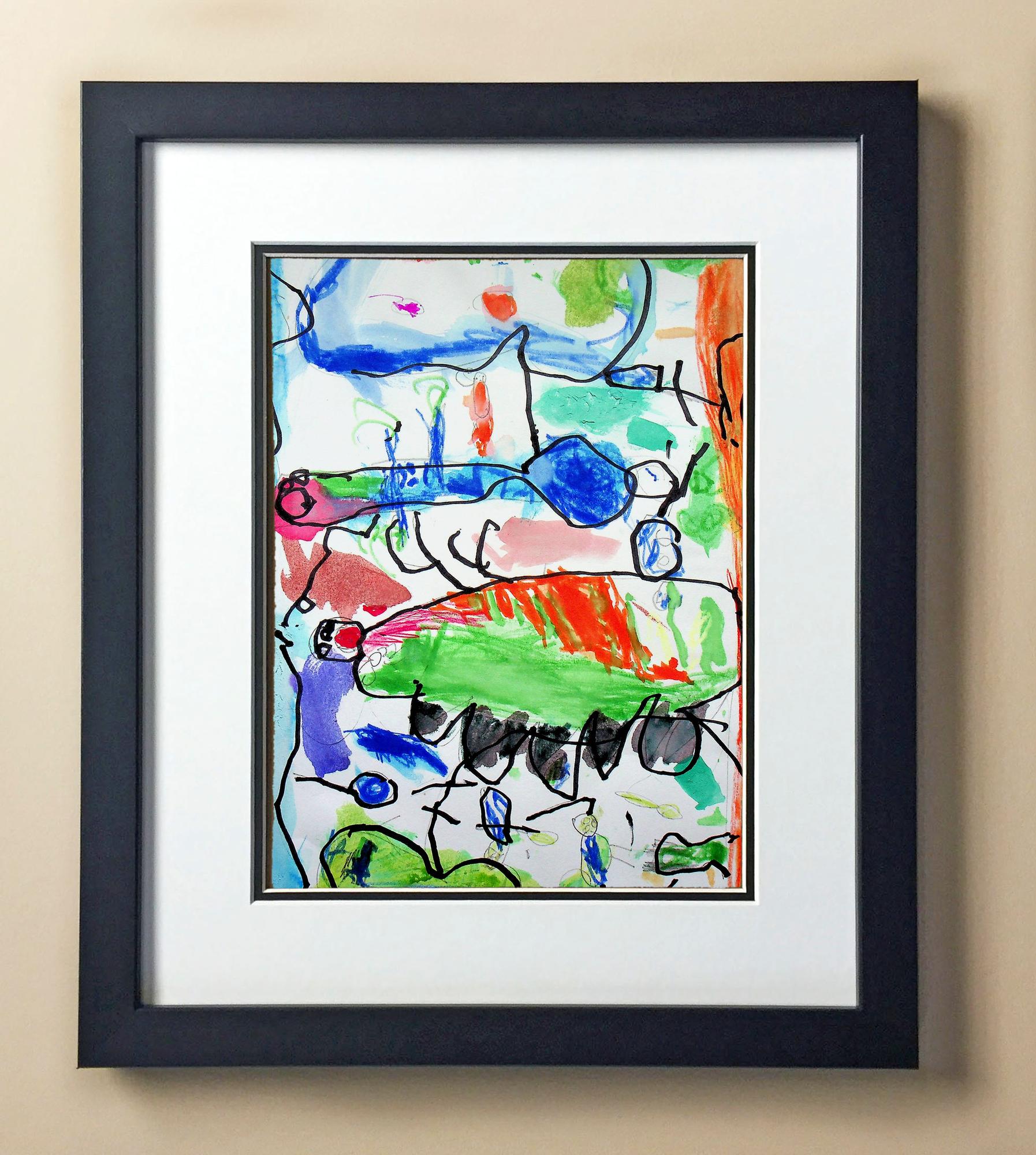 Included with the purchase is the Students Artwork, Frame, double matboard, shatter proof plexiglass, and a ready to hang backerboard with turnbuttons