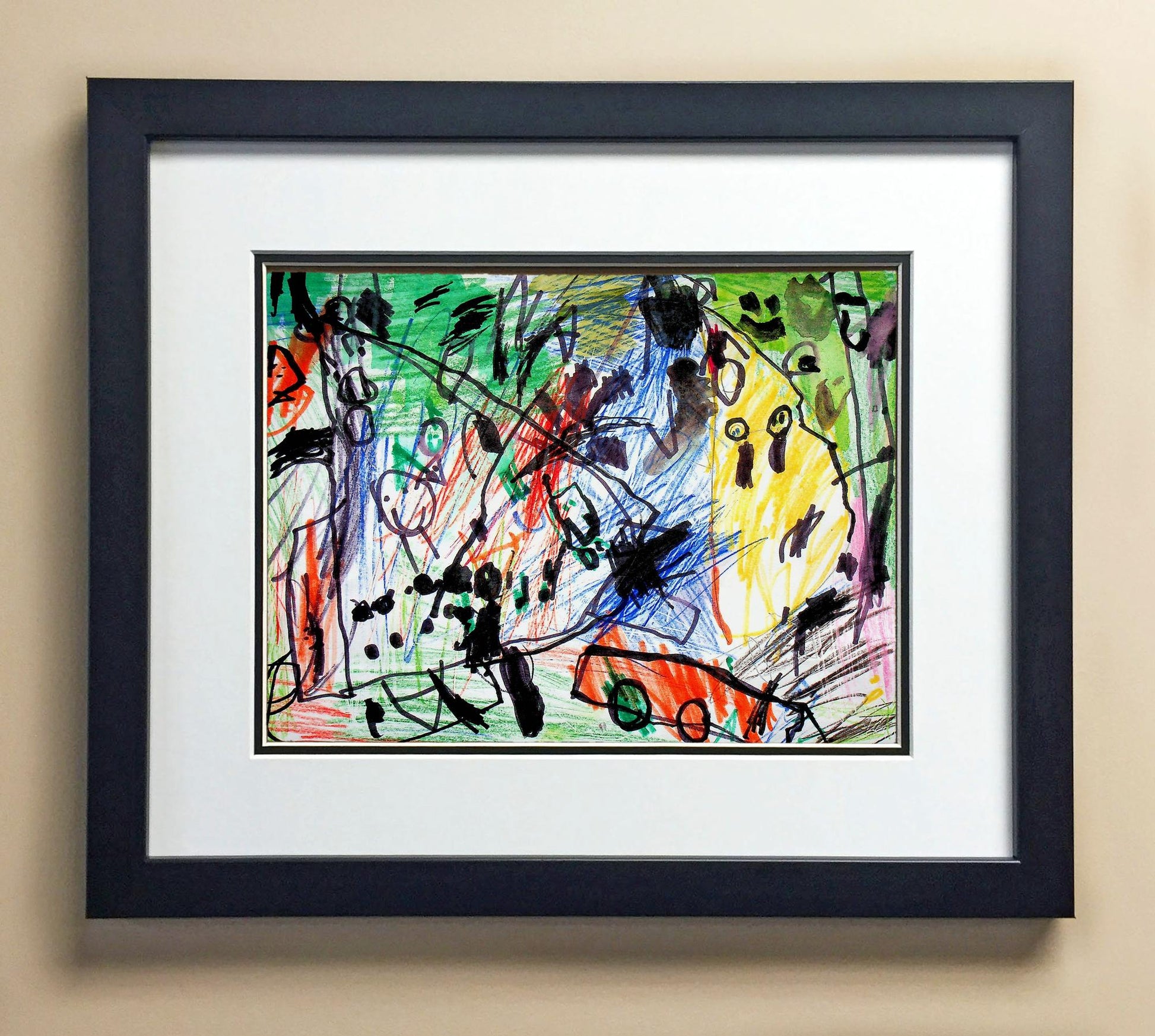 Included with the purchase is the Students Artwork, Frame, double matboard, shatter proof plexiglass, and a ready to hang backerboard with turnbuttons