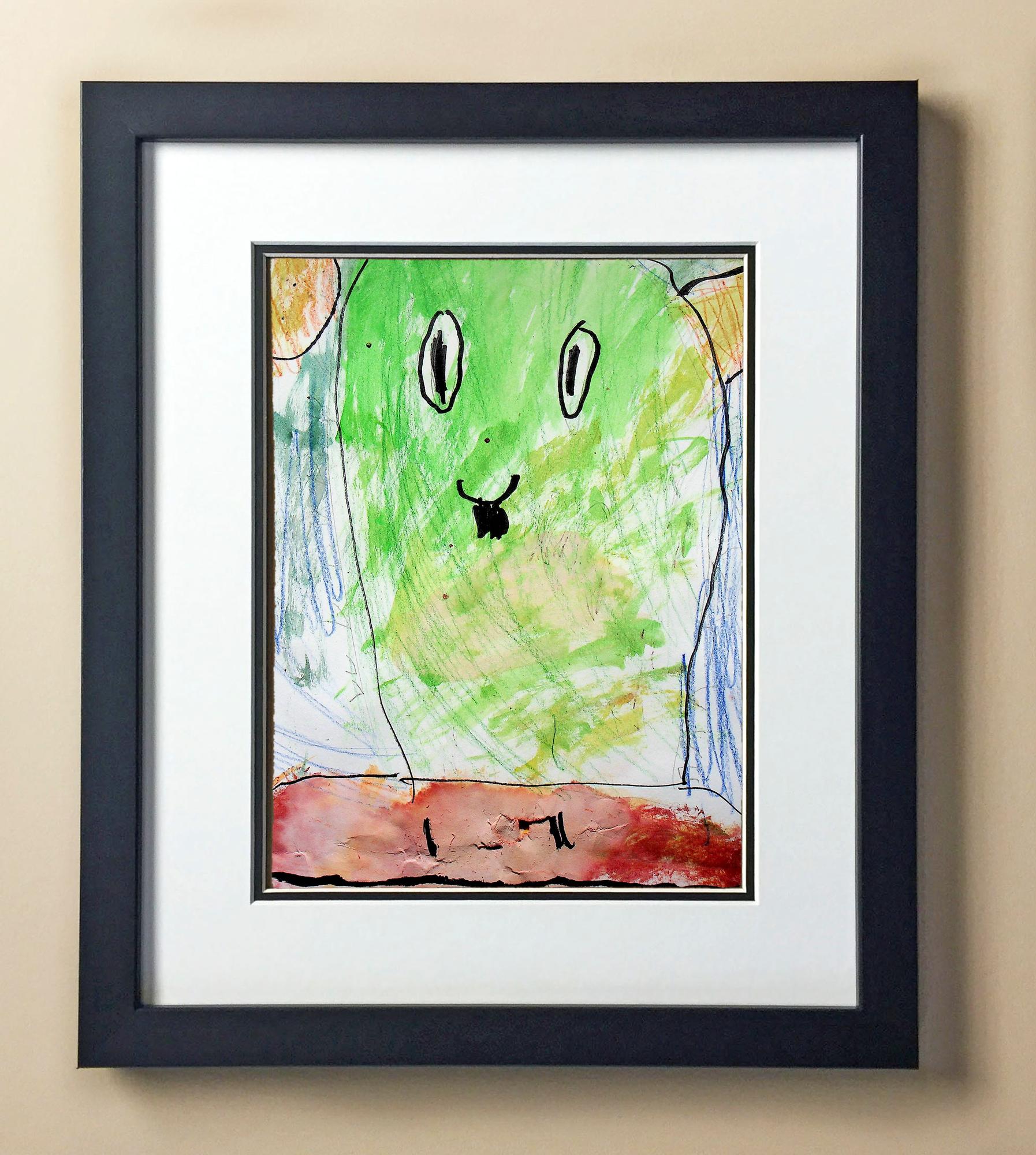 Included with the purchase is the Students Artwork, Frame, double matboard, shatter proof plexiglass, and a ready to hang backerboard with turnbuttons