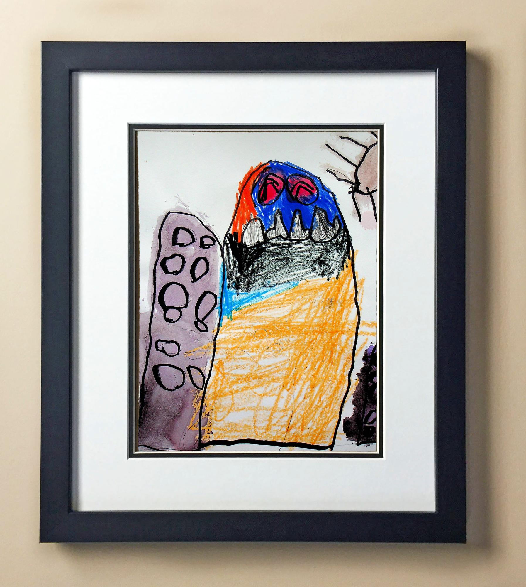Included with the purchase is the Students Artwork, Frame, double matboard, shatter proof plexiglass, and a ready to hang backerboard with turnbuttons