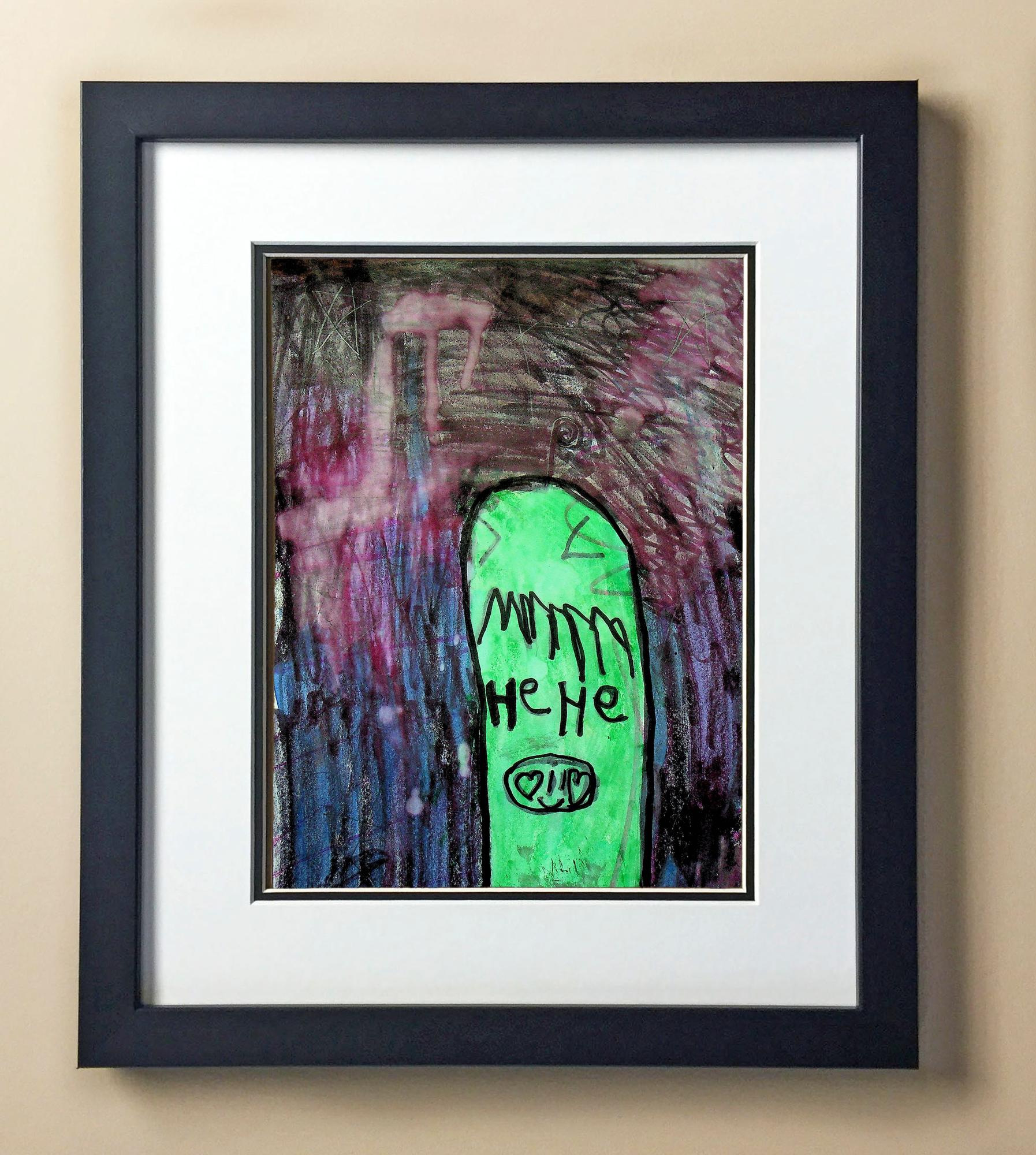 Included with the purchase is the Students Artwork, Frame, double matboard, shatter proof plexiglass, and a ready to hang backerboard with turnbuttons