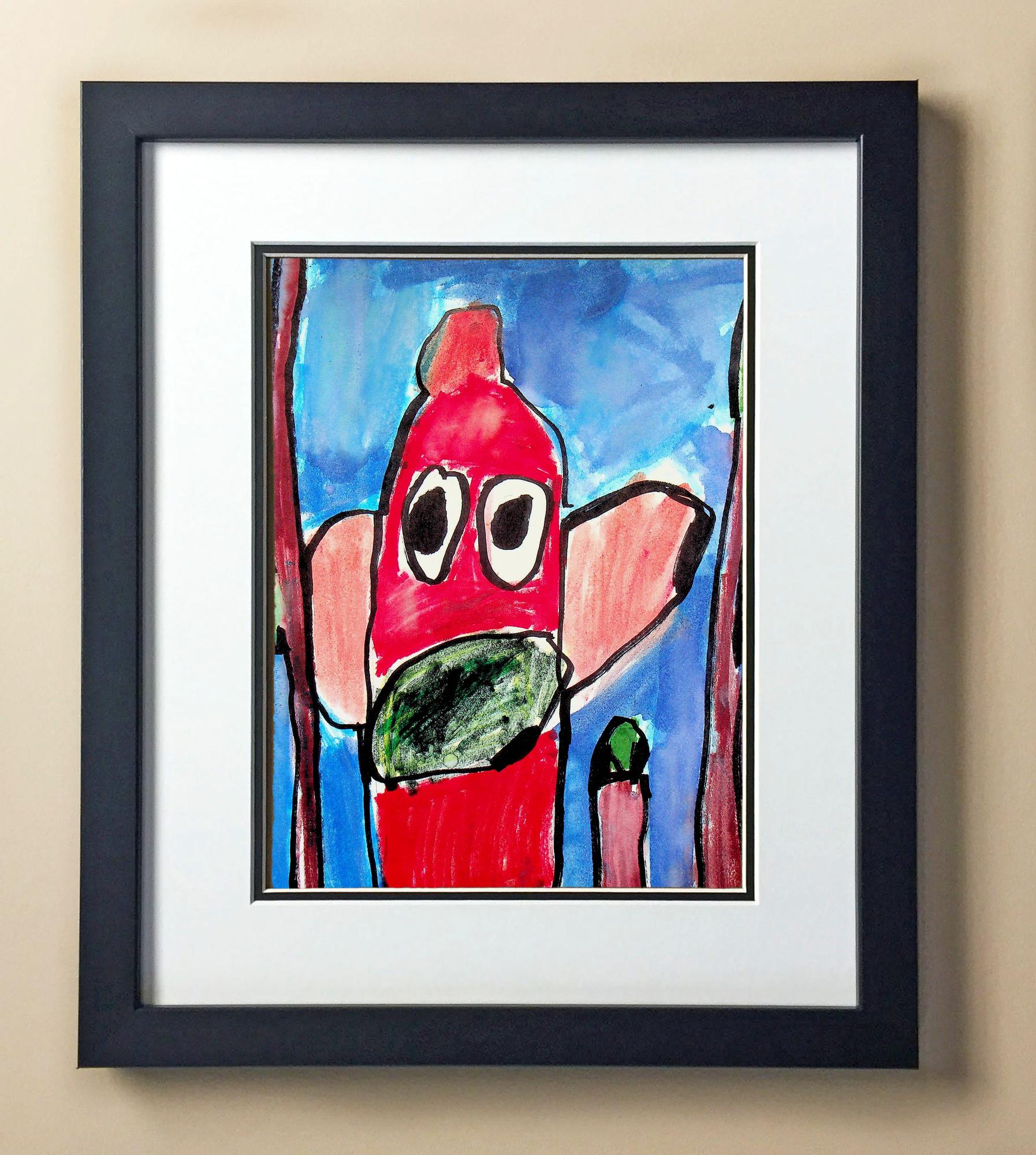 Included with the purchase is the Students Artwork, Frame, double matboard, shatter proof plexiglass, and a ready to hang backerboard with turnbuttons