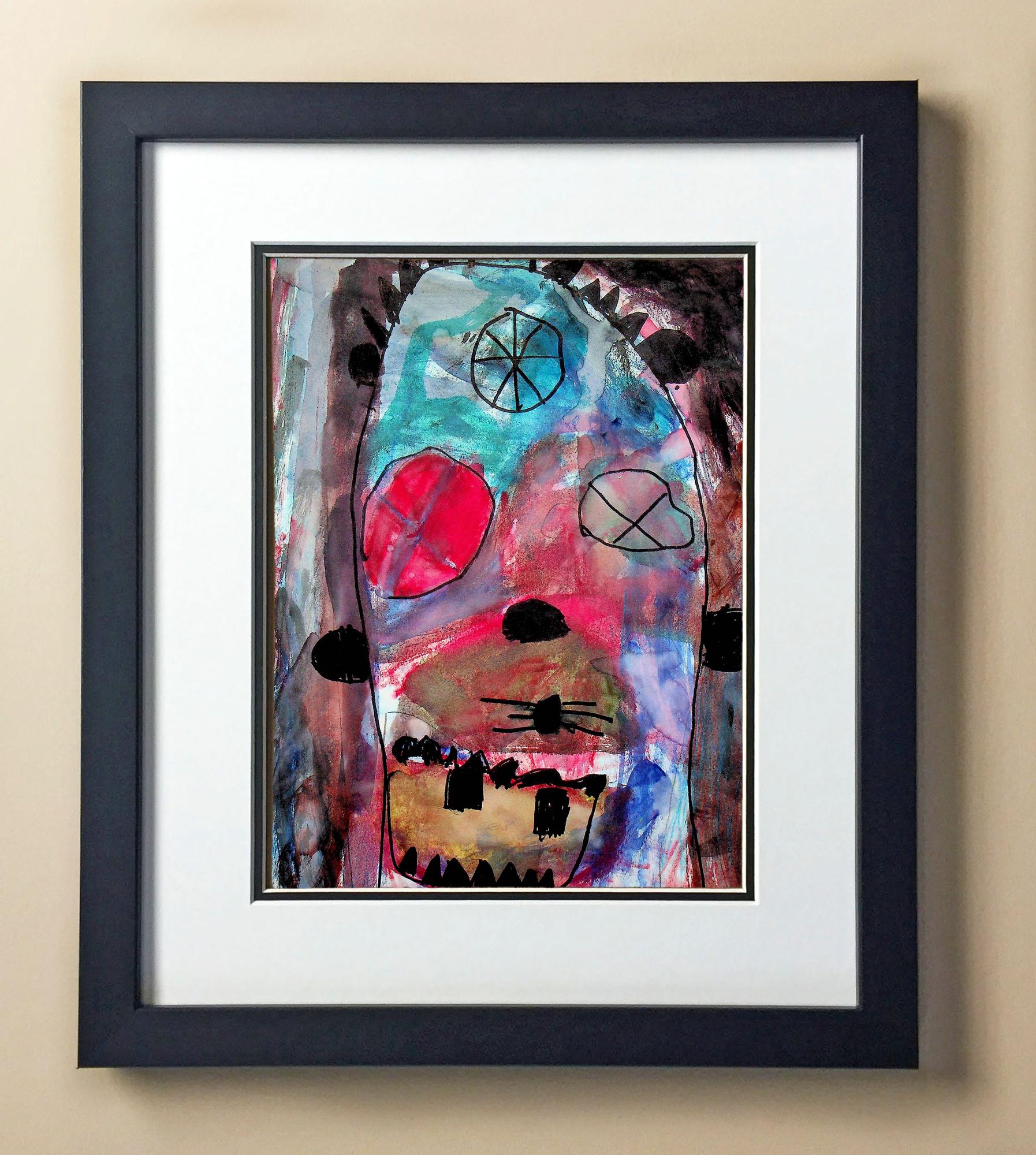 Included with the purchase is the Students Artwork, Frame, double matboard, shatter proof plexiglass, and a ready to hang backerboard with turnbuttons