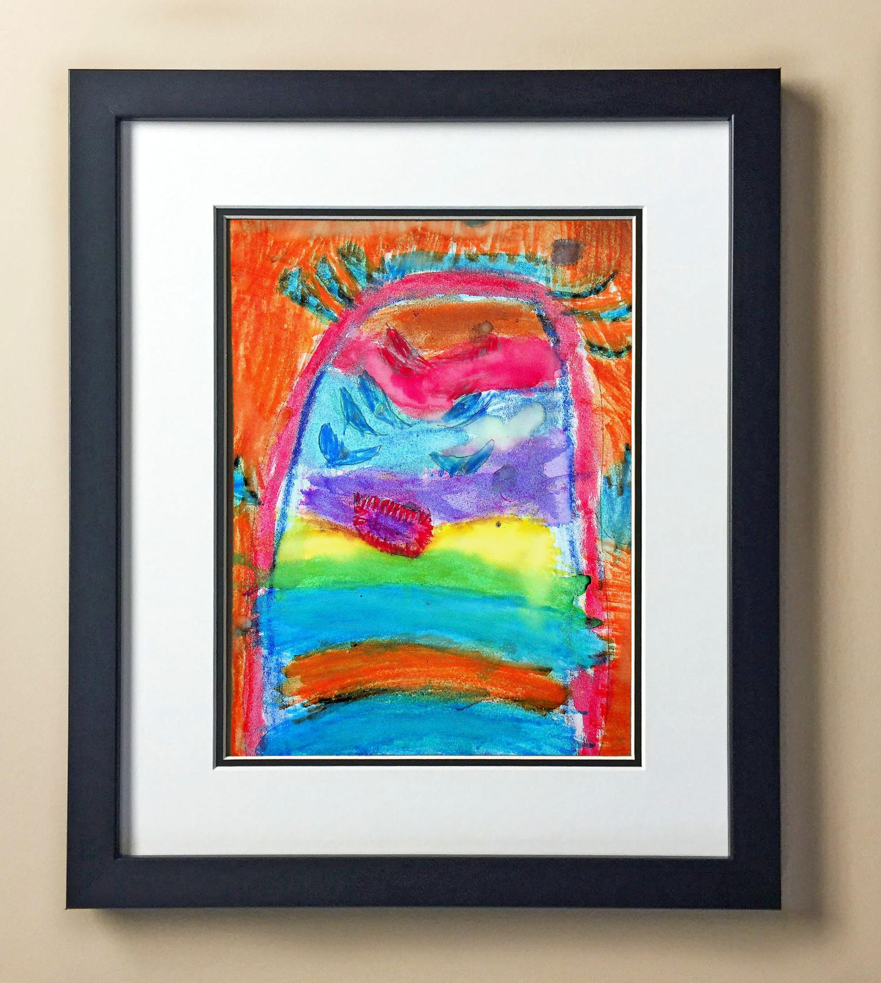 Included with the purchase is the Students Artwork, Frame, double matboard, shatter proof plexiglass, and a ready to hang backerboard with turnbuttons