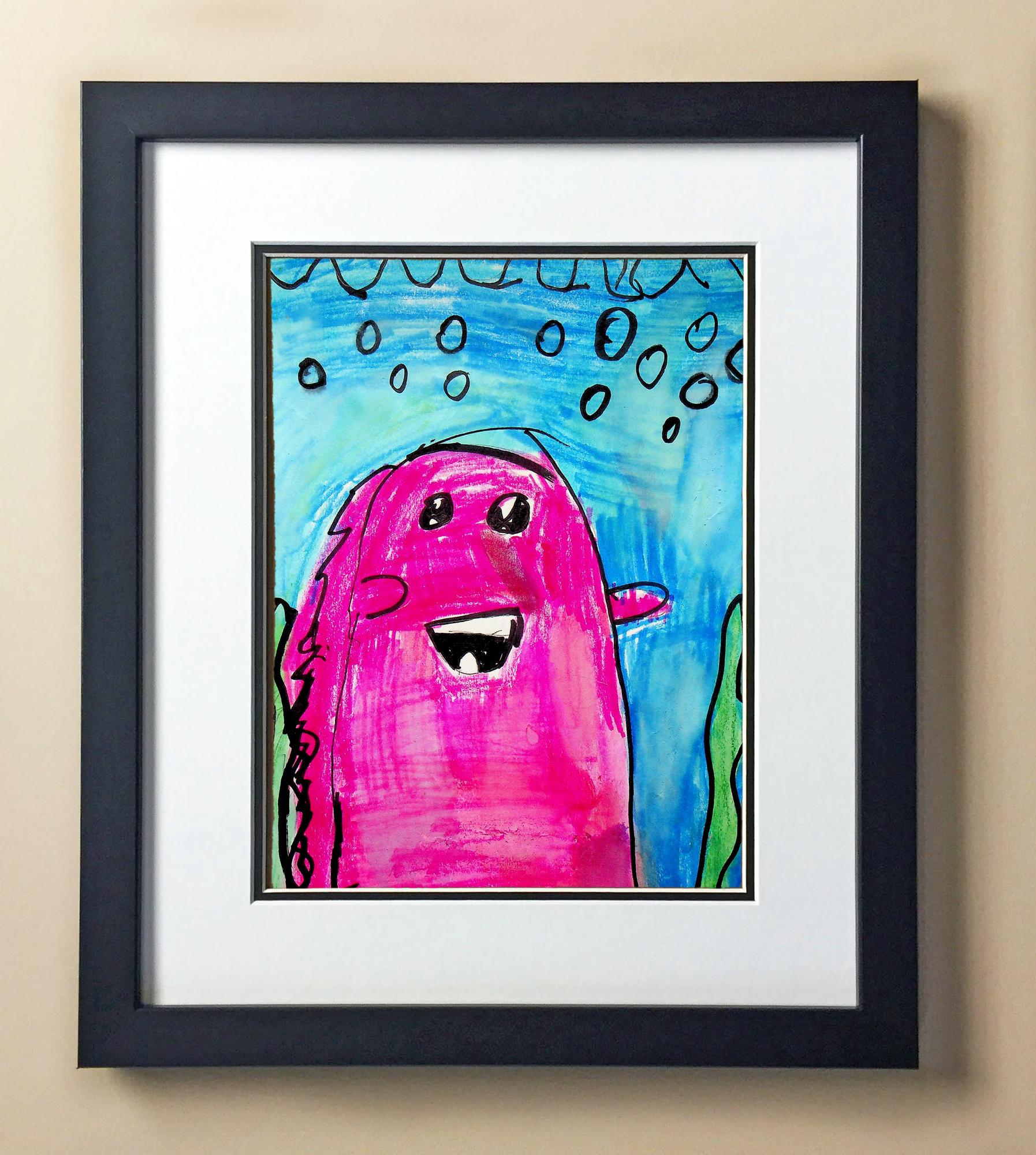 Included with the purchase is the Students Artwork, Frame, double matboard, shatter proof plexiglass, and a ready to hang backerboard with turnbuttons