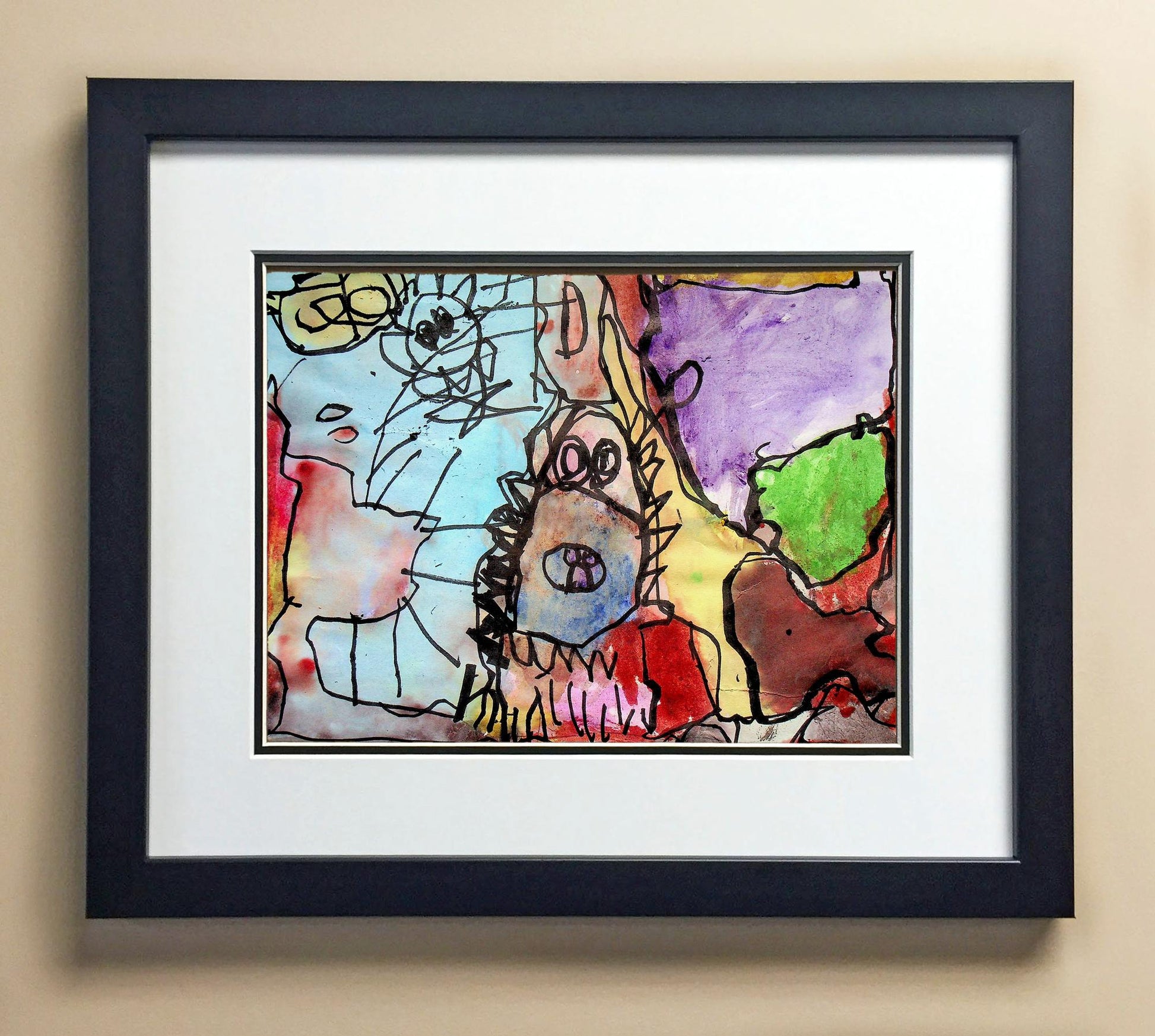Included with the purchase is the Students Artwork, Frame, double matboard, shatter proof plexiglass, and a ready to hang backerboard with turnbuttons