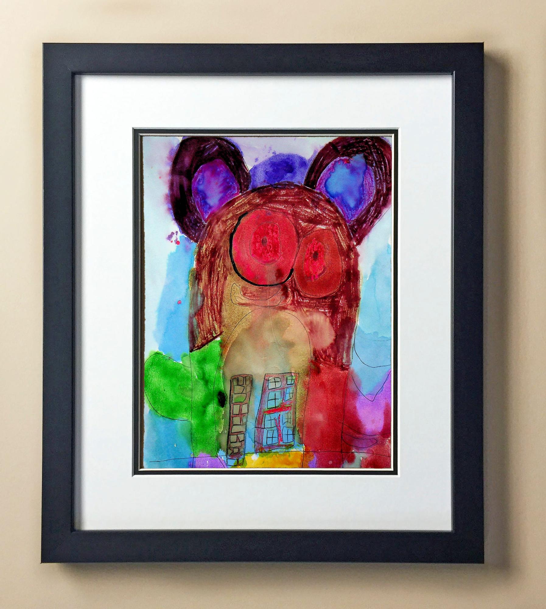 Included with the purchase is the Students Artwork, Frame, double matboard, shatter proof plexiglass, and a ready to hang backerboard with turnbuttons