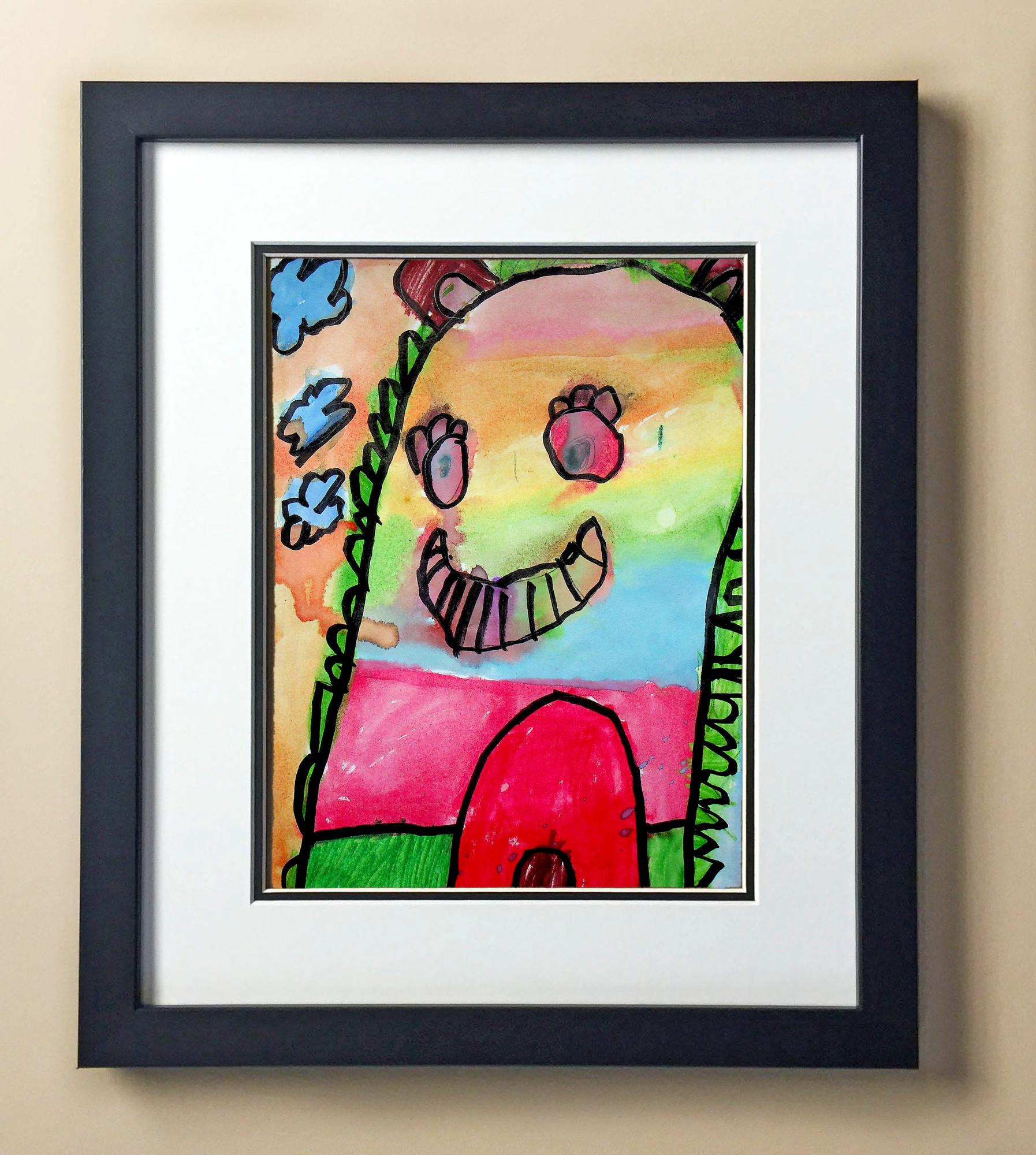 Included with the purchase is the Students Artwork, Frame, double matboard, shatter proof plexiglass, and a ready to hang backerboard with turnbuttons