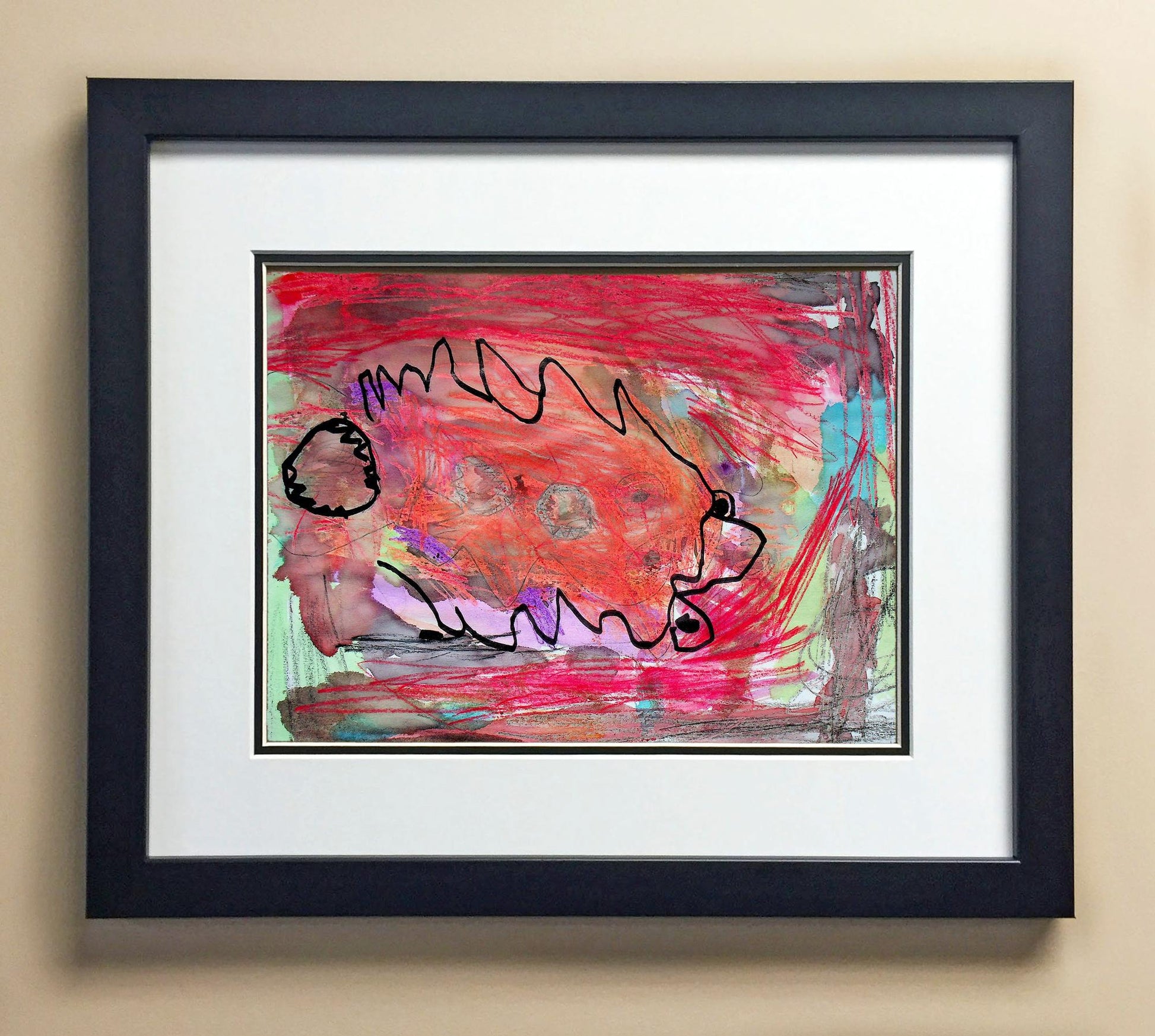 Included with the purchase is the Students Artwork, Frame, double matboard, shatter proof plexiglass, and a ready to hang backerboard with turnbuttons
