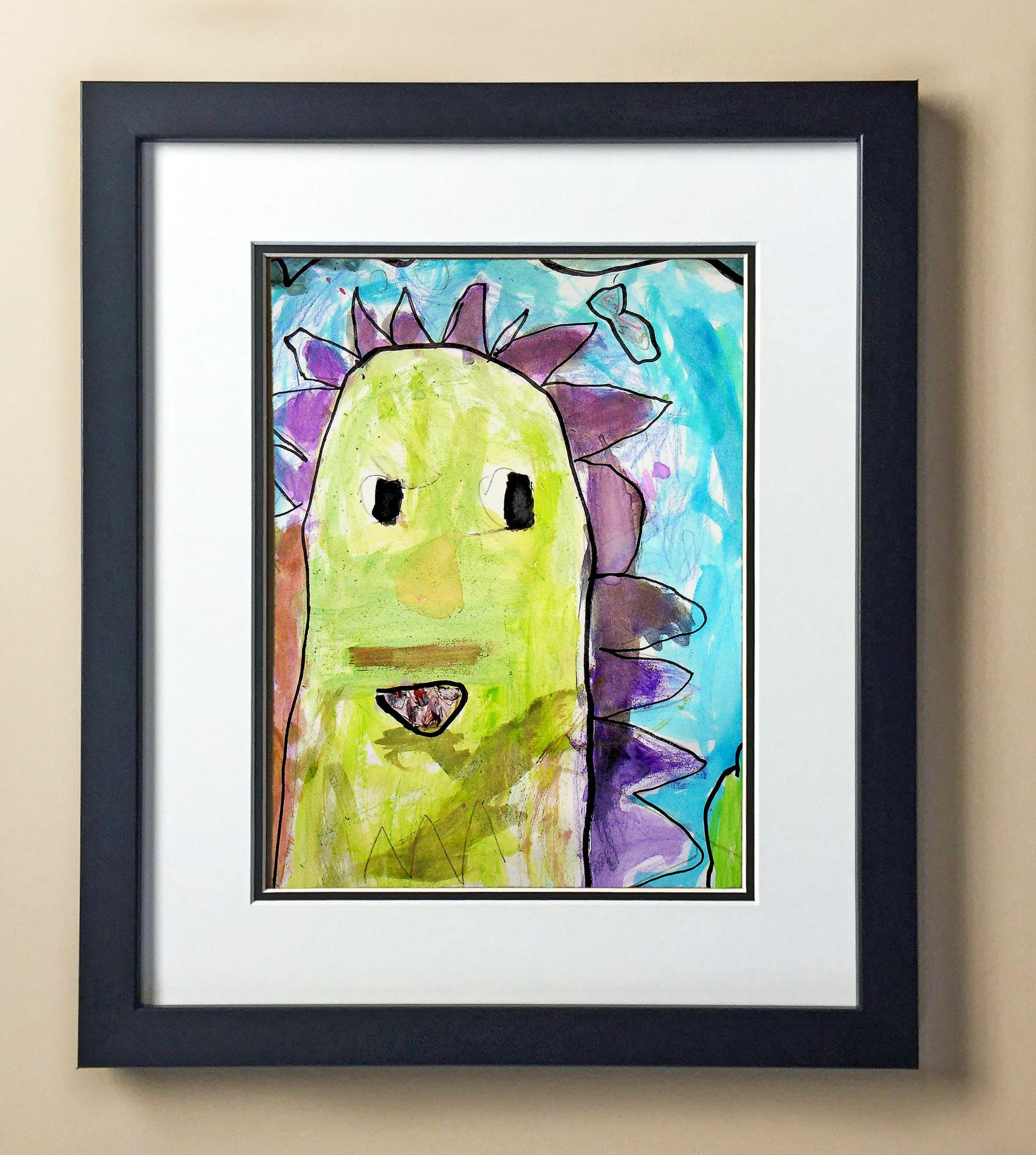 Included with the purchase is the Students Artwork, Frame, double matboard, shatter proof plexiglass, and a ready to hang backerboard with turnbuttons