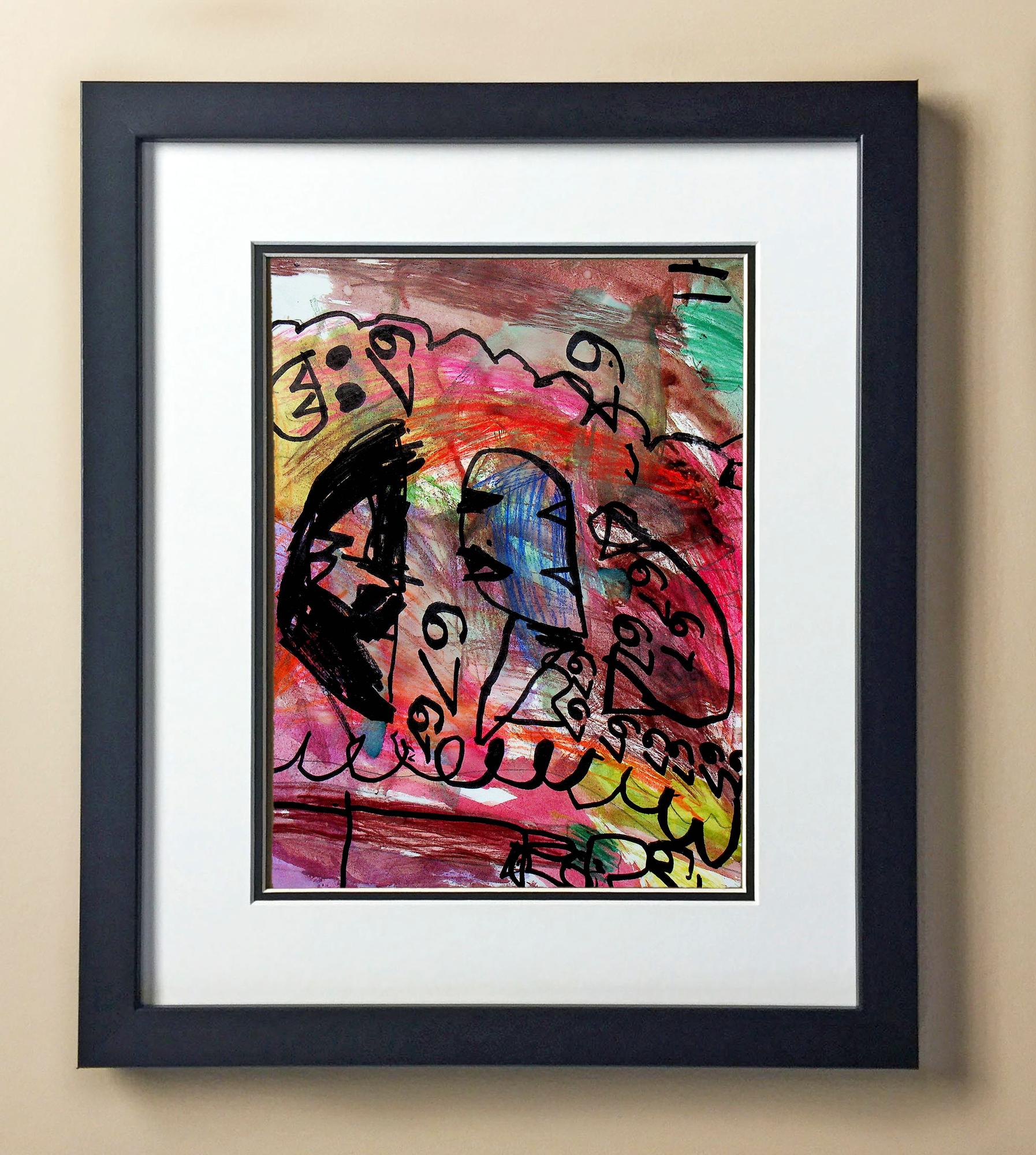 Included with the purchase is the Students Artwork, Frame, double matboard, shatter proof plexiglass, and a ready to hang backerboard with turnbuttons