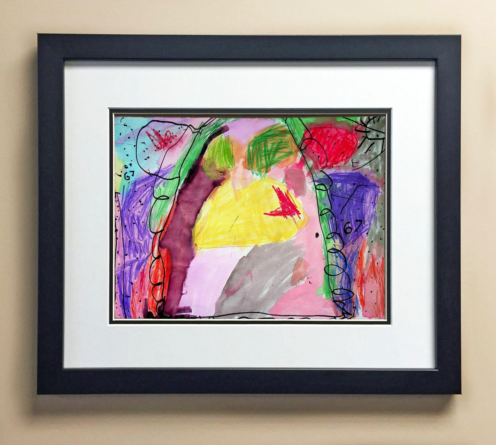 Included with the purchase is the Students Artwork, Frame, double matboard, shatter proof plexiglass, and a ready to hang backerboard with turnbuttons