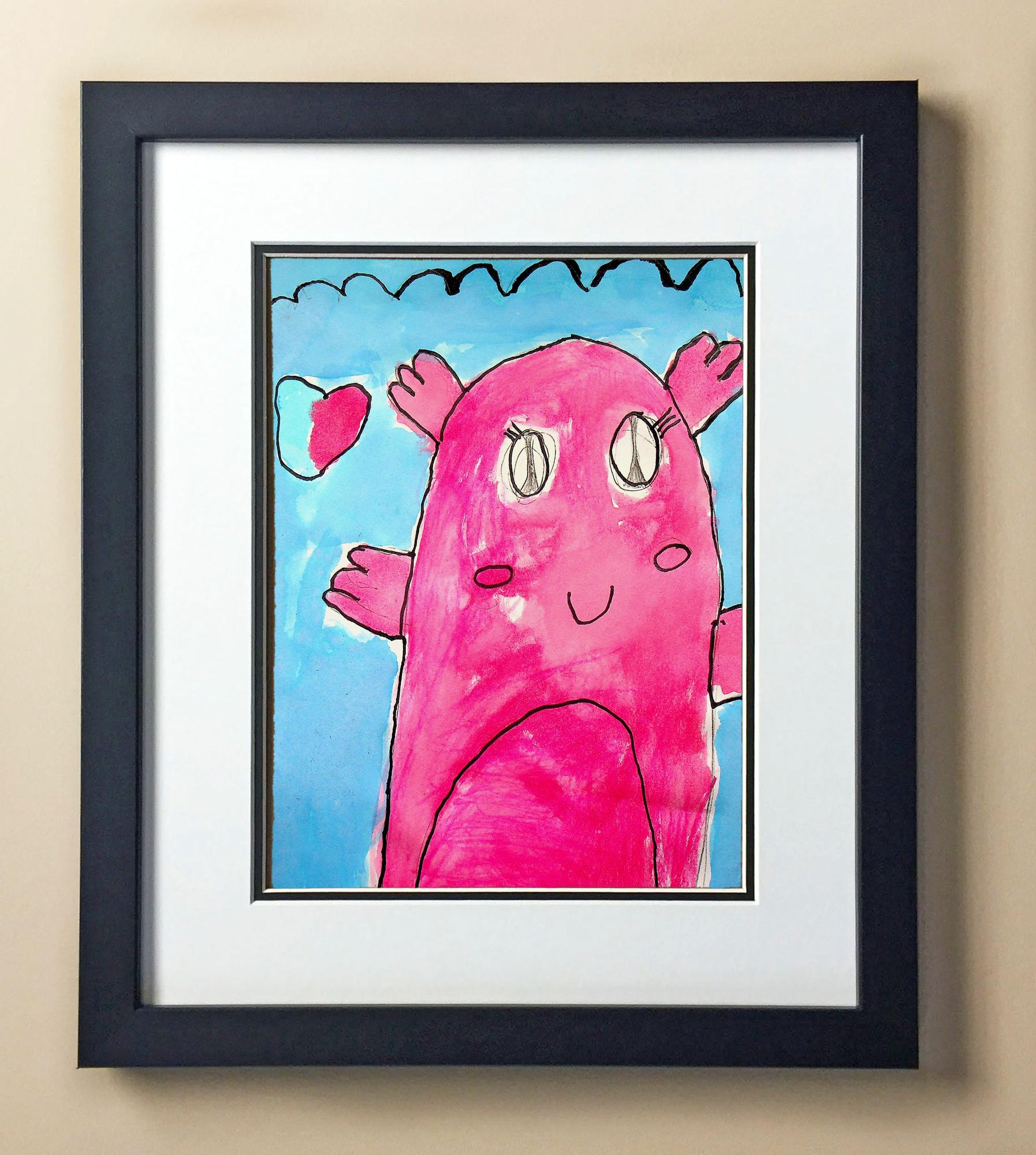 Included with the purchase is the Students Artwork, Frame, double matboard, shatter proof plexiglass, and a ready to hang backerboard with turnbuttons