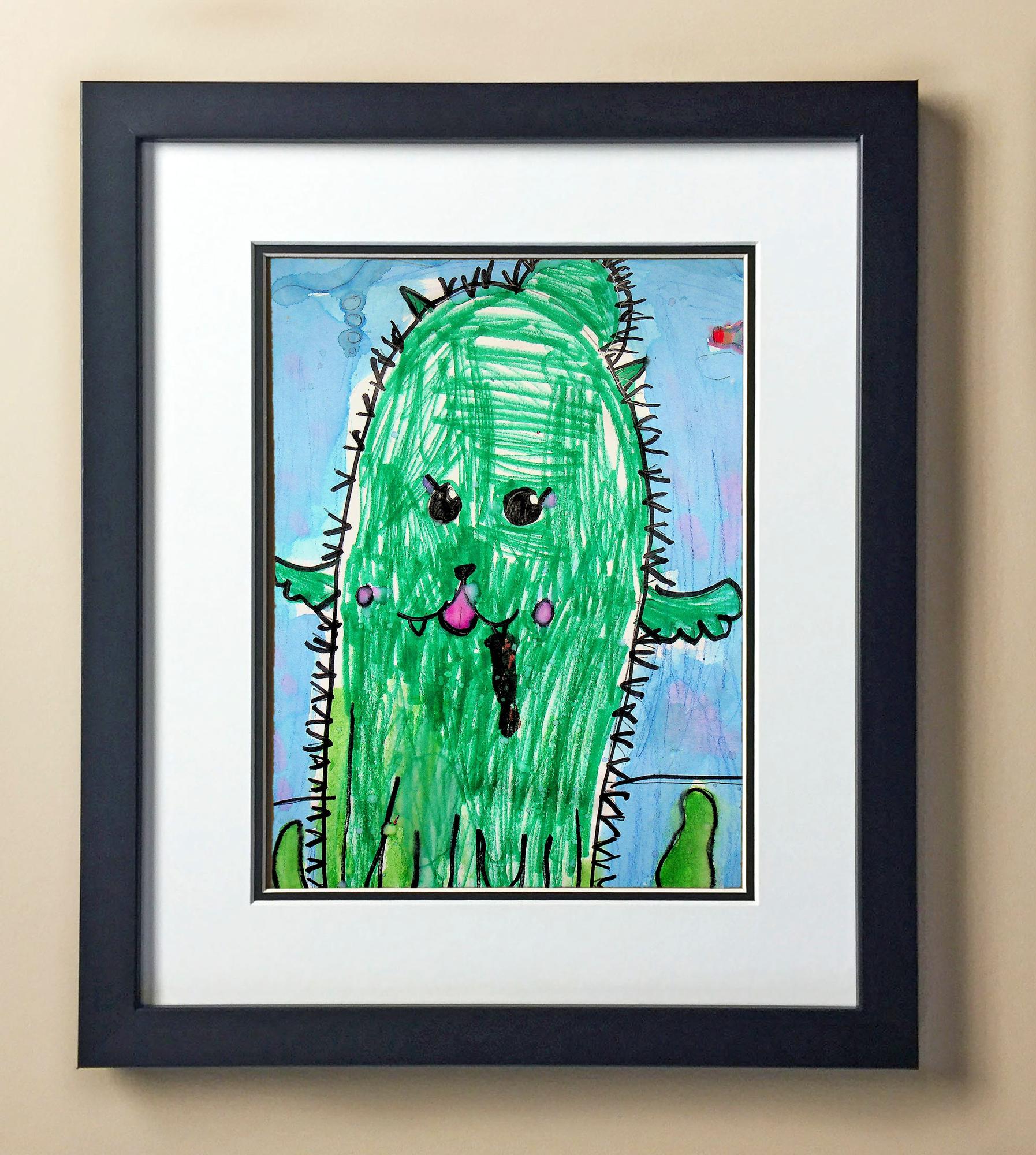 Included with the purchase is the Students Artwork, Frame, double matboard, shatter proof plexiglass, and a ready to hang backerboard with turnbuttons