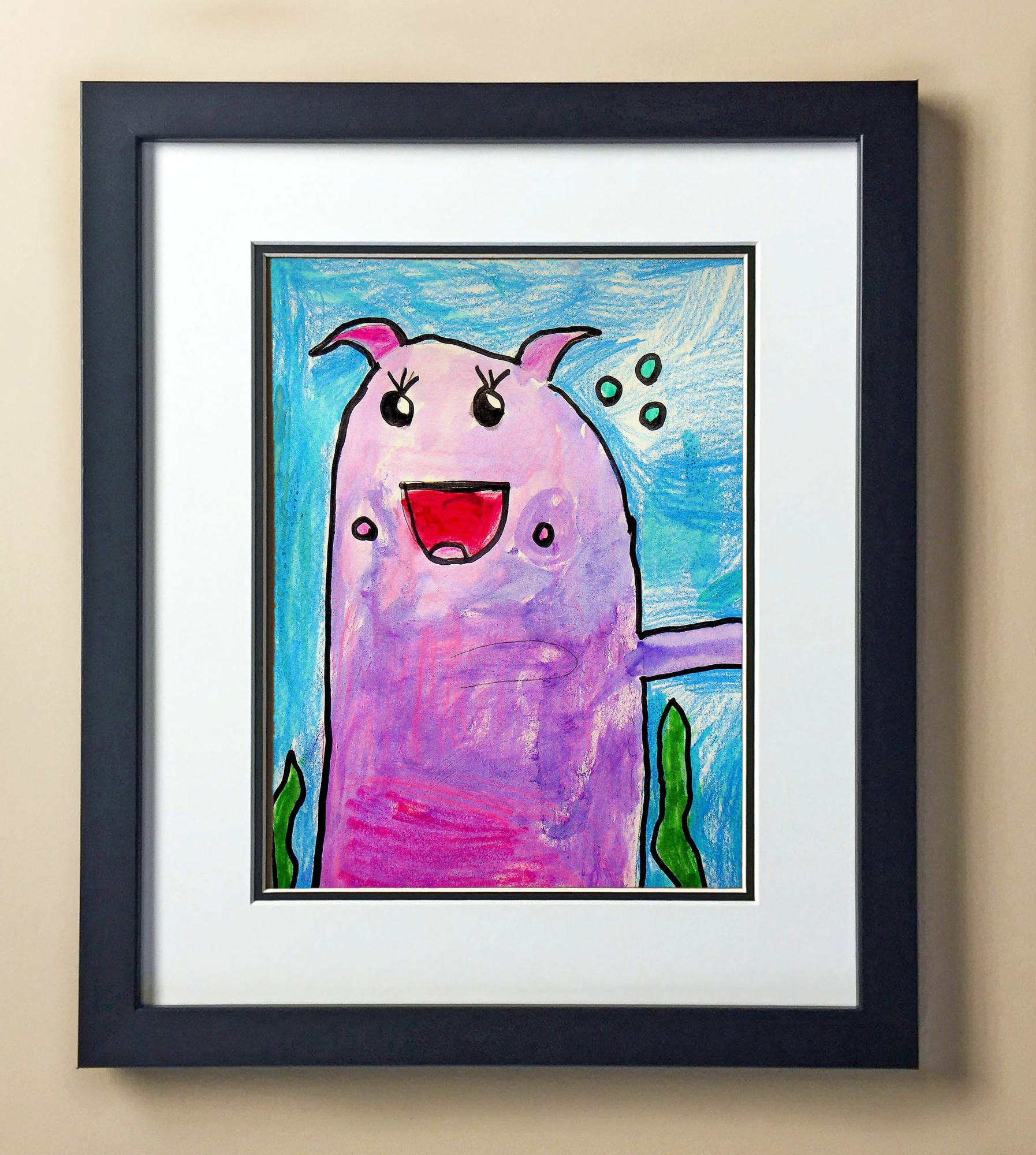 Included with the purchase is the Students Artwork, Frame, double matboard, shatter proof plexiglass, and a ready to hang backerboard with turnbuttons