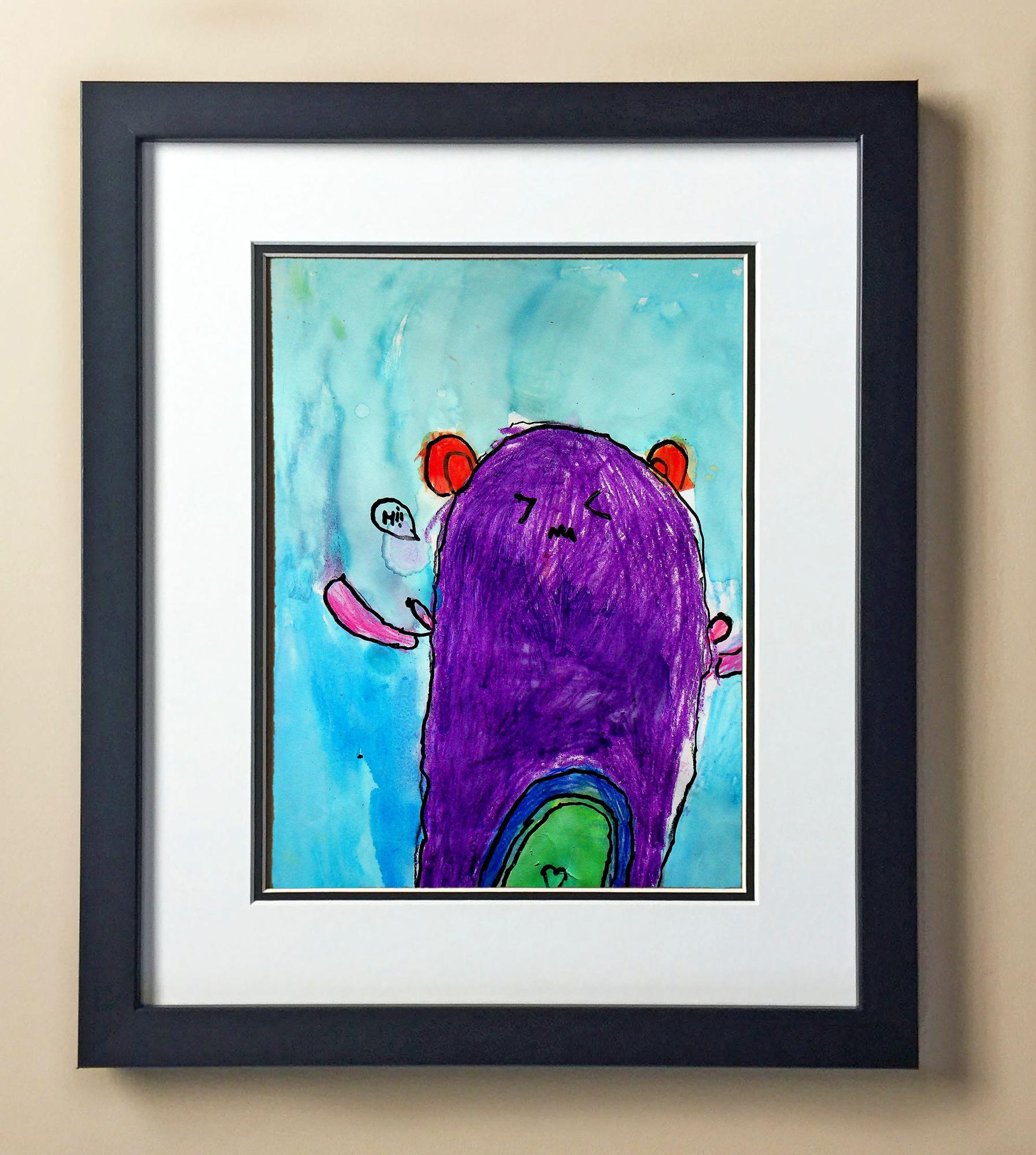 Included with the purchase is the Students Artwork, Frame, double matboard, shatter proof plexiglass, and a ready to hang backerboard with turnbuttons