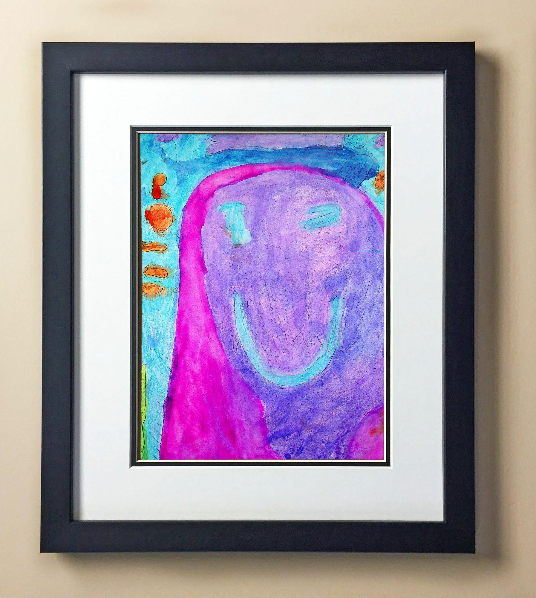 Included with the purchase is the Students Artwork, Frame, double matboard, shatter proof plexiglass, and a ready to hang backerboard with turnbuttons