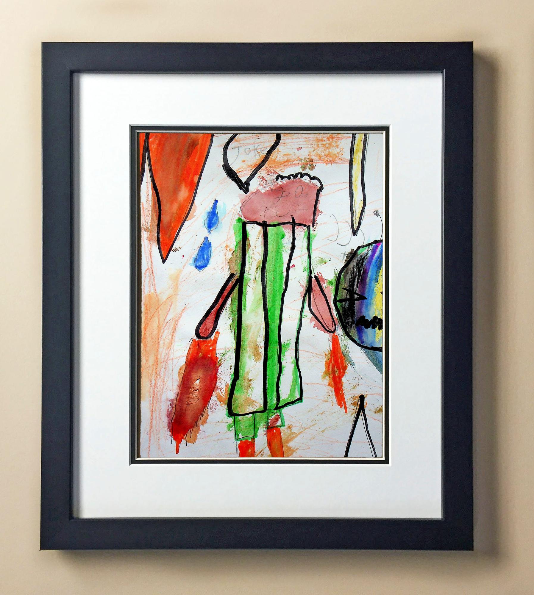Included with the purchase is the Students Artwork, Frame, double matboard, shatter proof plexiglass, and a ready to hang backerboard with turnbuttons