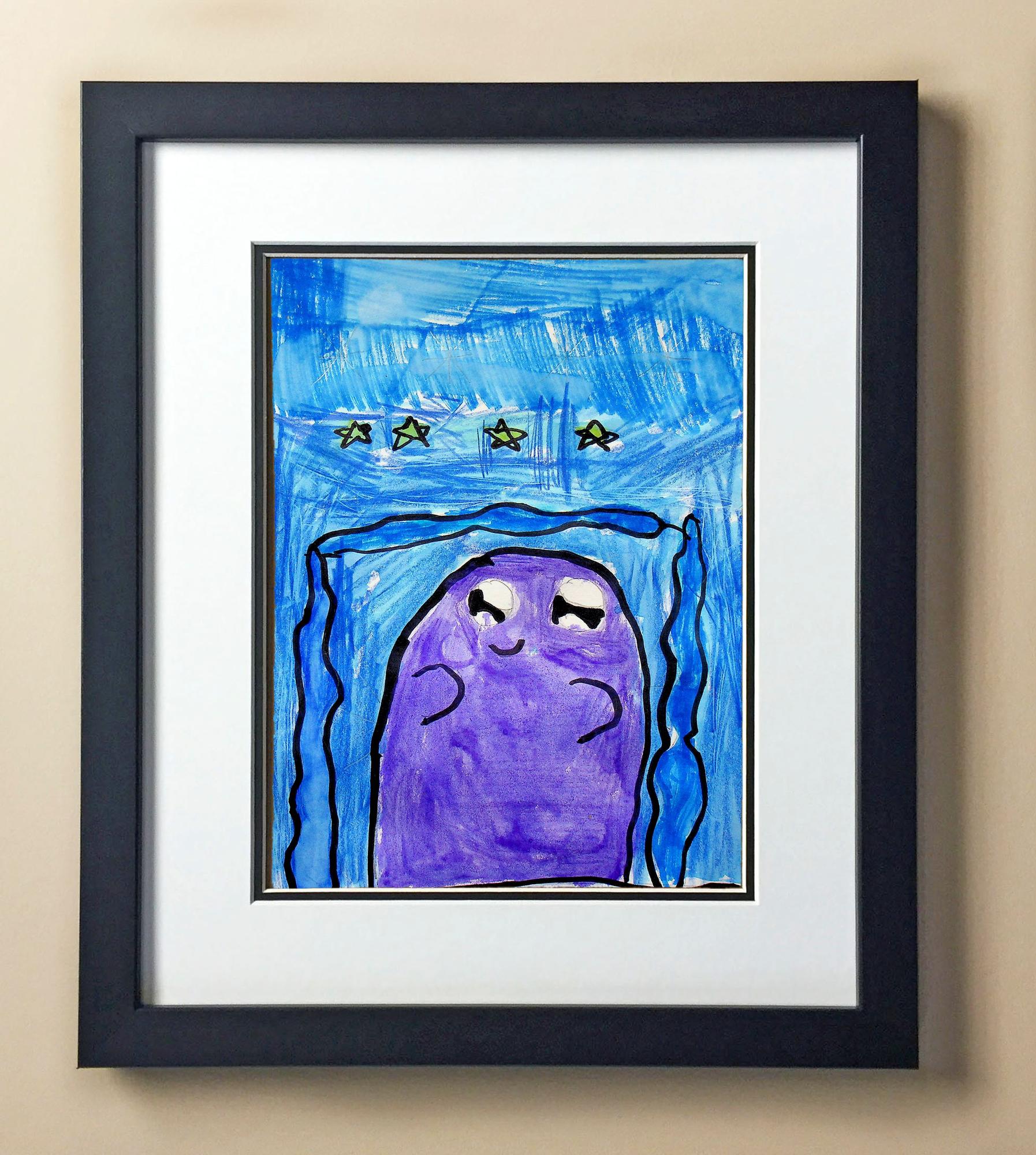 Included with the purchase is the Students Artwork, Frame, double matboard, shatter proof plexiglass, and a ready to hang backerboard with turnbuttons