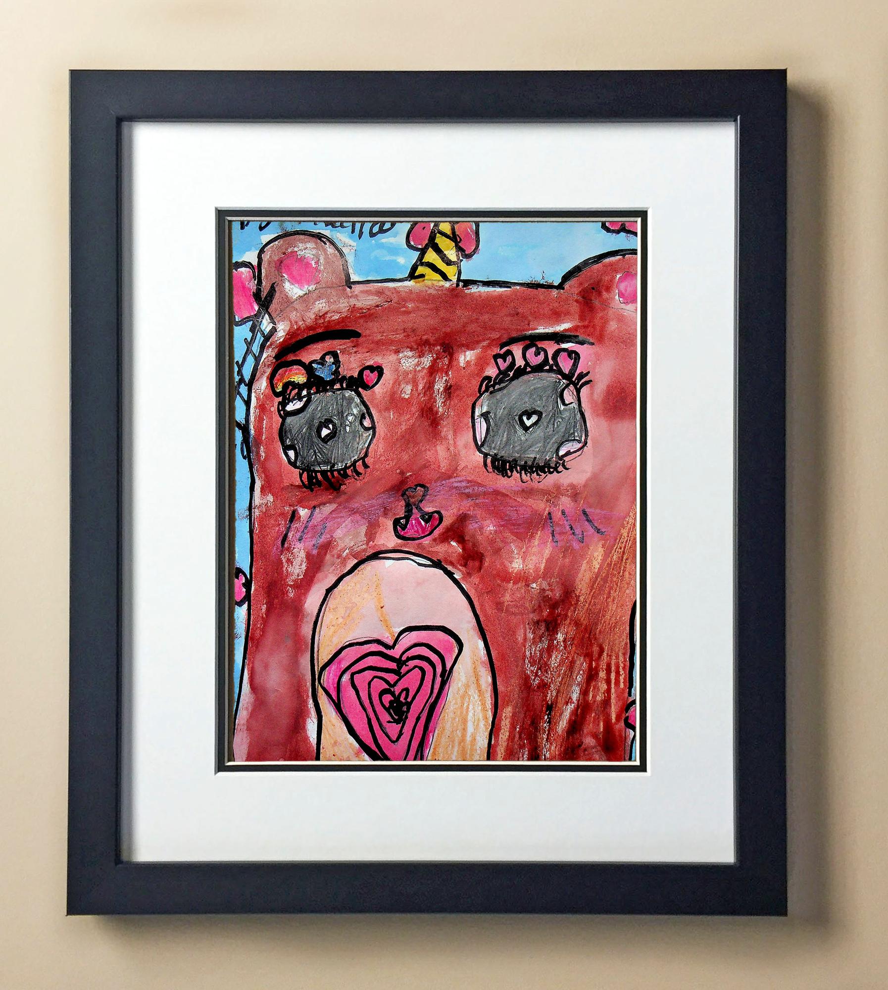 Included with the purchase is the Students Artwork, Frame, double matboard, shatter proof plexiglass, and a ready to hang backerboard with turnbuttons