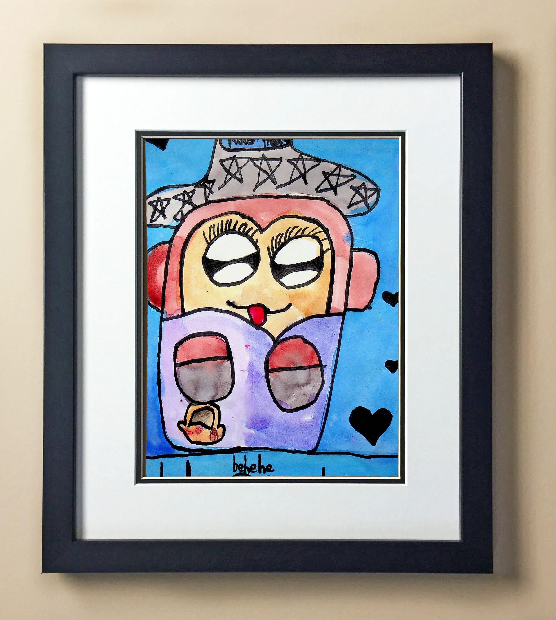 Included with the purchase is the Students Artwork, Frame, double matboard, shatter proof plexiglass, and a ready to hang backerboard with turnbuttons