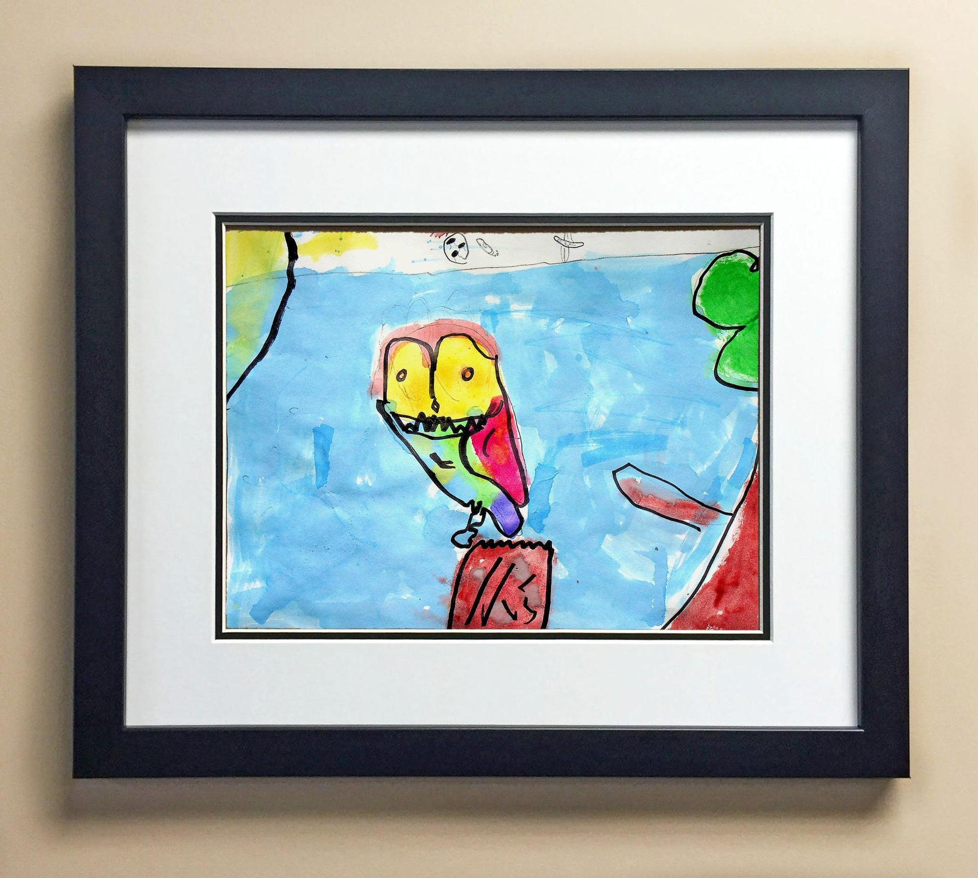 Included with the purchase is the Students Artwork, Frame, double matboard, shatter proof plexiglass, and a ready to hang backerboard with turnbuttons