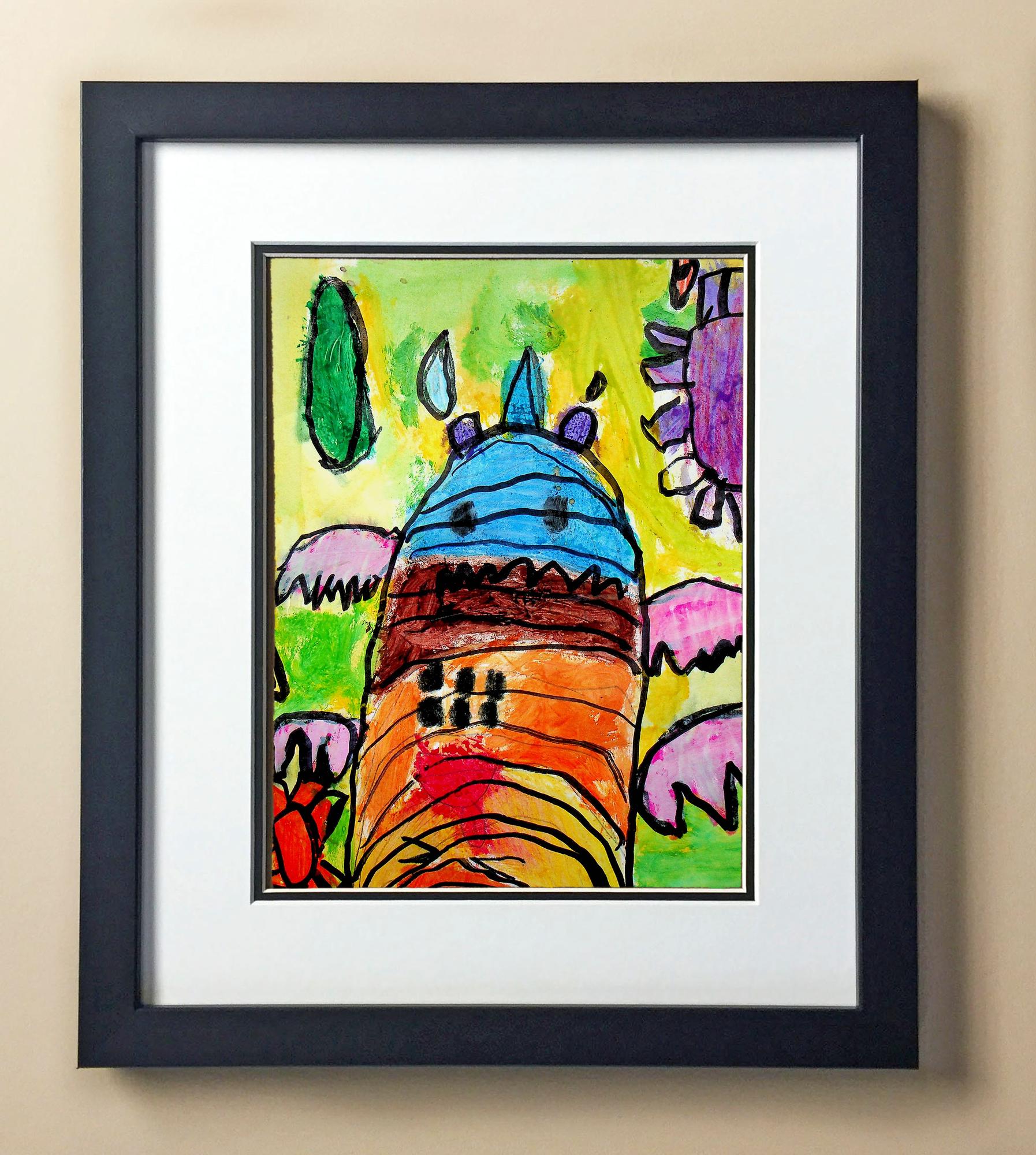 Included with the purchase is the Students Artwork, Frame, double matboard, shatter proof plexiglass, and a ready to hang backerboard with turnbuttons