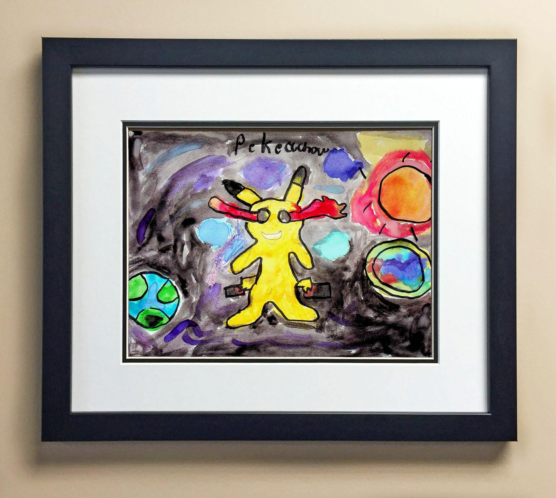 Included with the purchase is the Students Artwork, Frame, double matboard, shatter proof plexiglass, and a ready to hang backerboard with turnbuttons