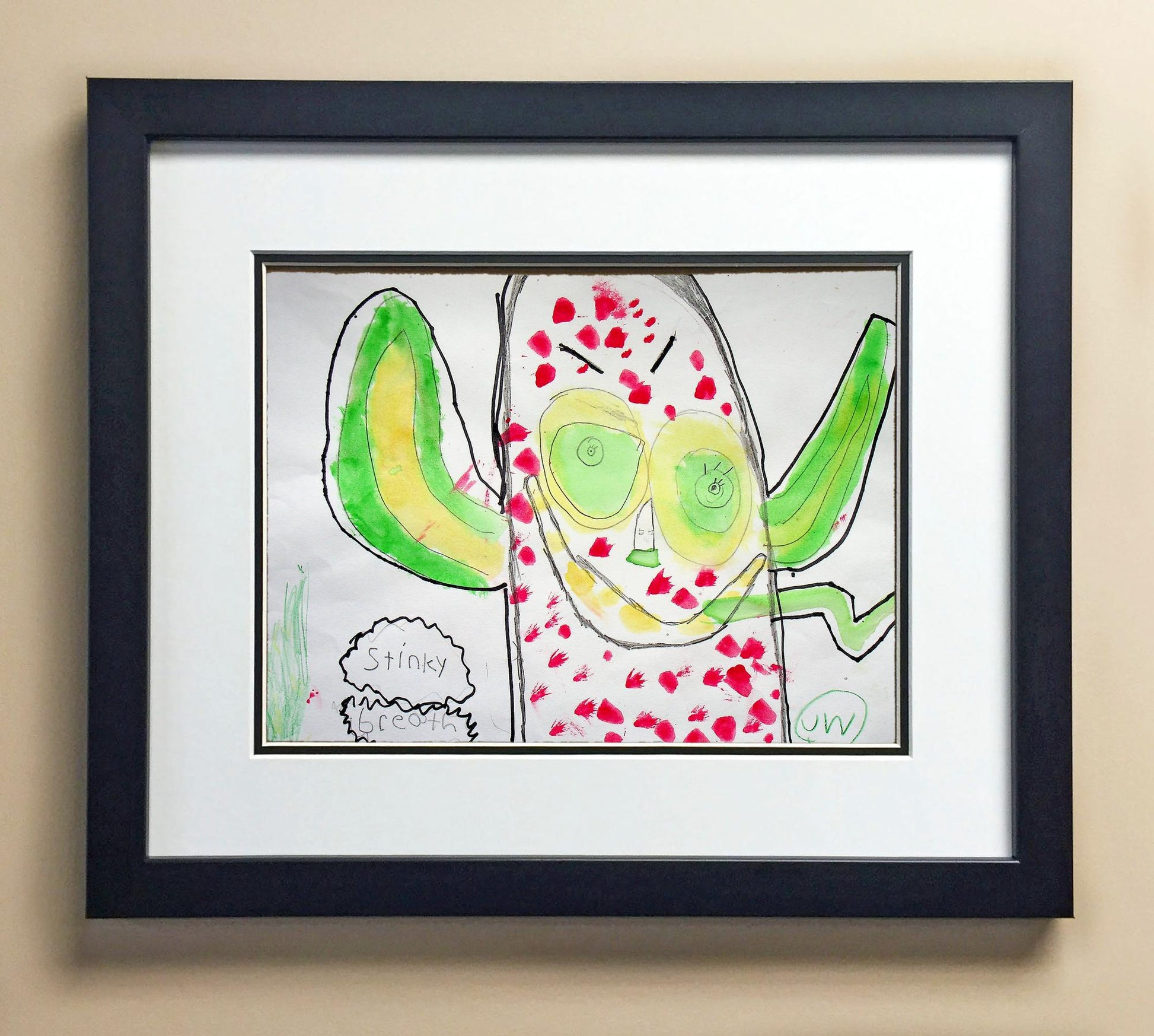 Included with the purchase is the Students Artwork, Frame, double matboard, shatter proof plexiglass, and a ready to hang backerboard with turnbuttons