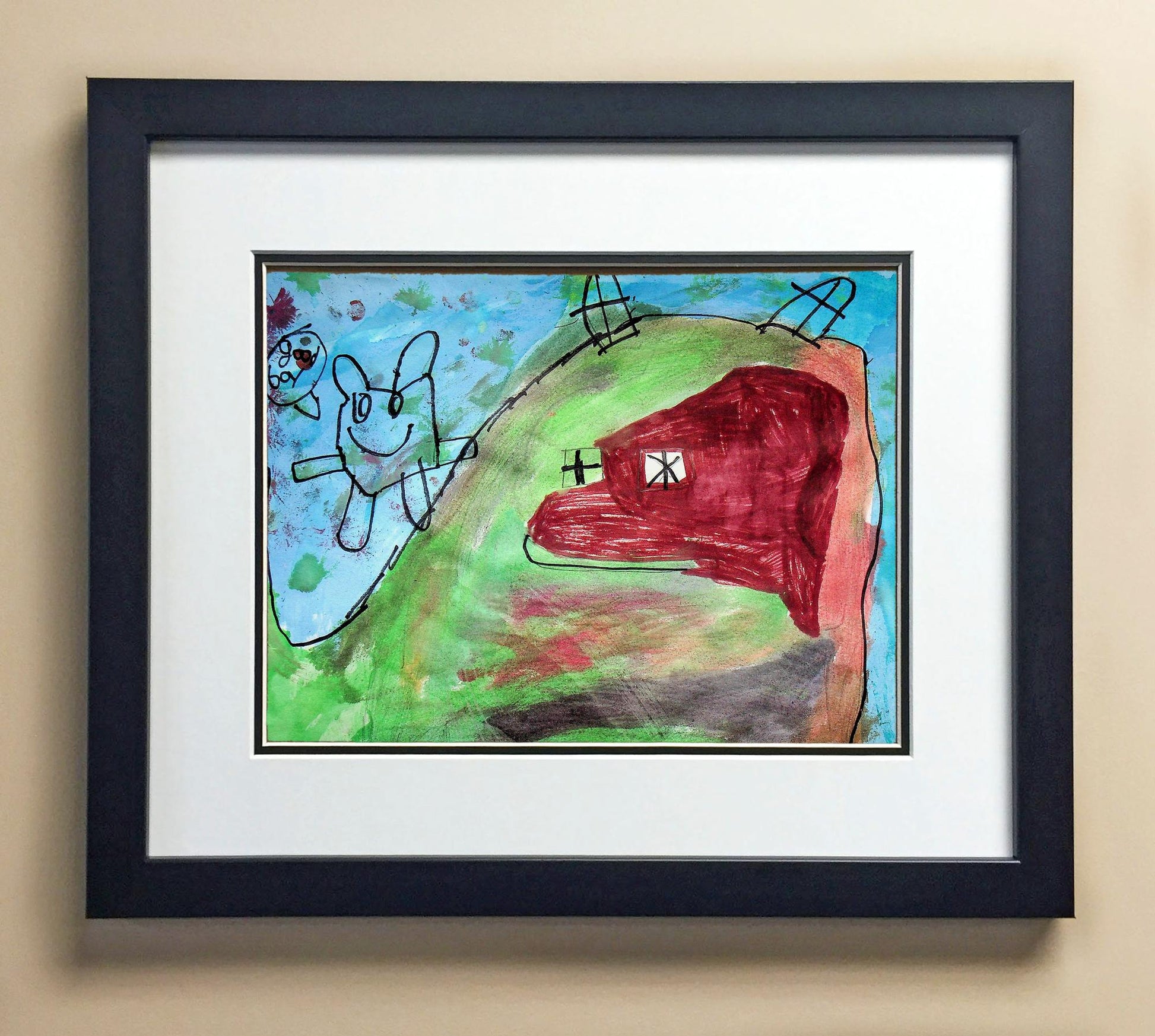 Included with the purchase is the Students Artwork, Frame, double matboard, shatter proof plexiglass, and a ready to hang backerboard with turnbuttons