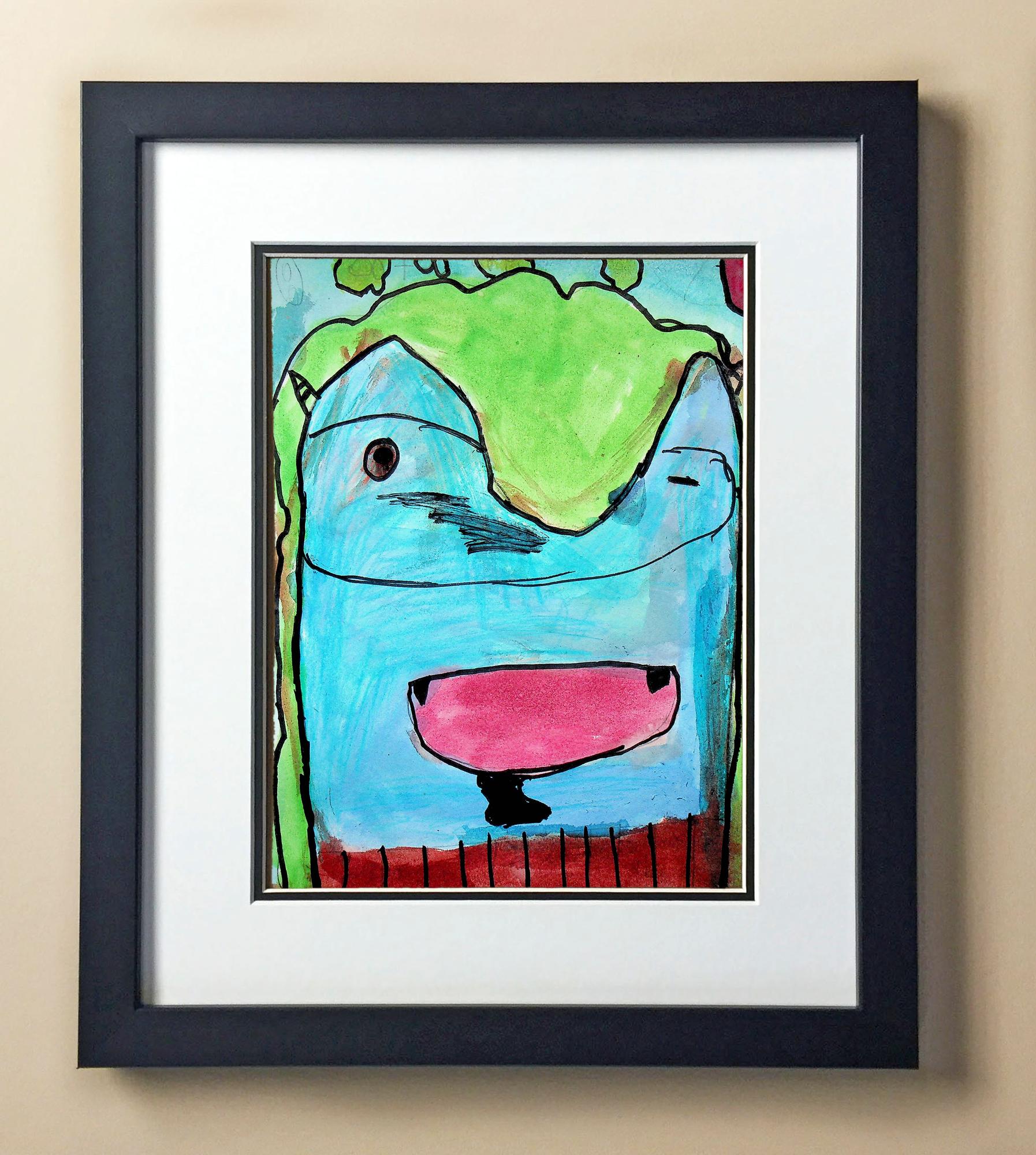 Included with the purchase is the Students Artwork, Frame, double matboard, shatter proof plexiglass, and a ready to hang backerboard with turnbuttons