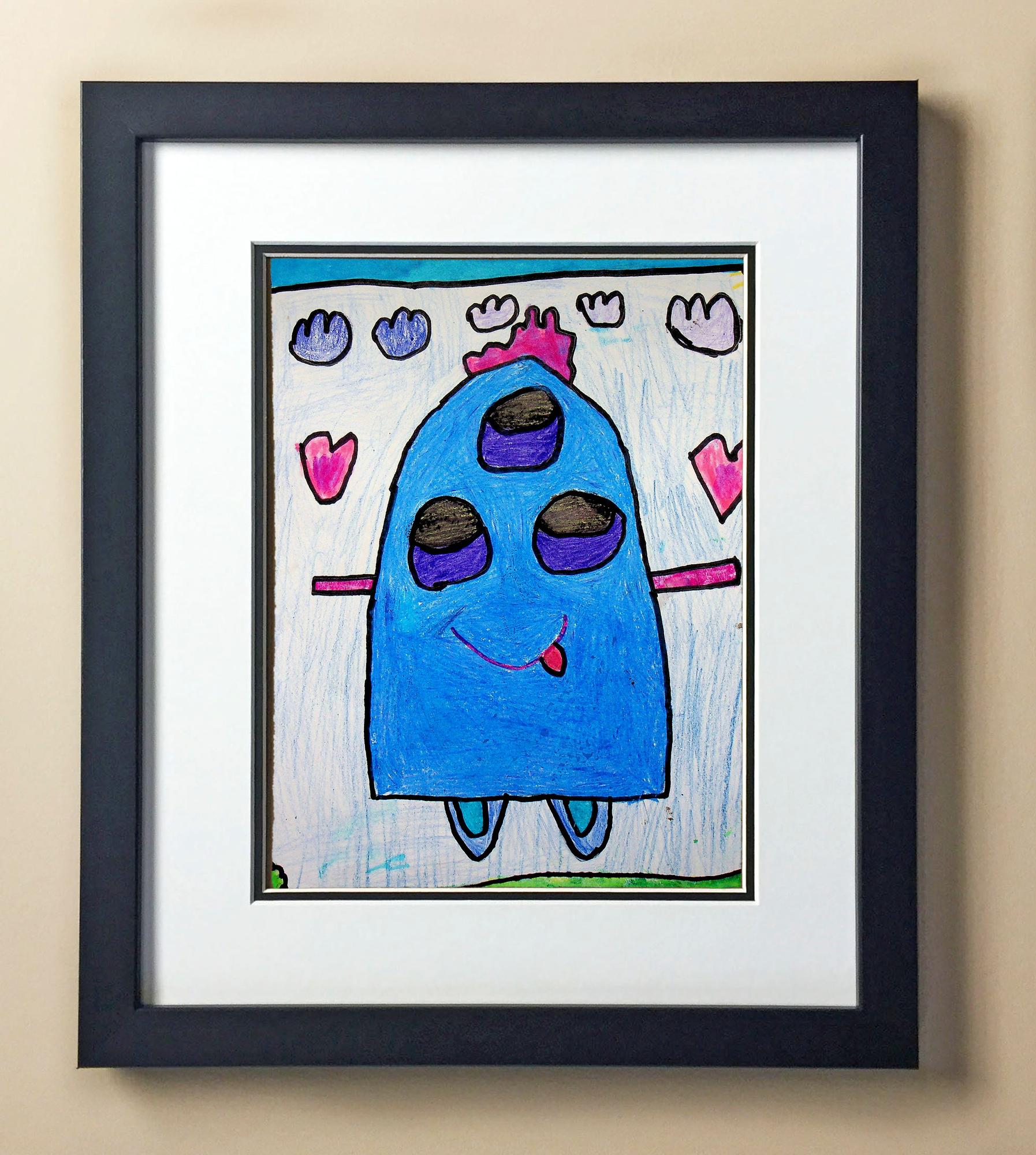 Included with the purchase is the Students Artwork, Frame, double matboard, shatter proof plexiglass, and a ready to hang backerboard with turnbuttons