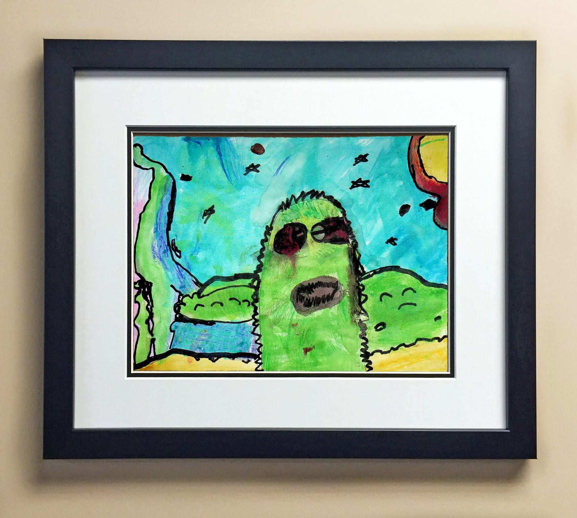 Included with the purchase is the Students Artwork, Frame, double matboard, shatter proof plexiglass, and a ready to hang backerboard with turnbuttons