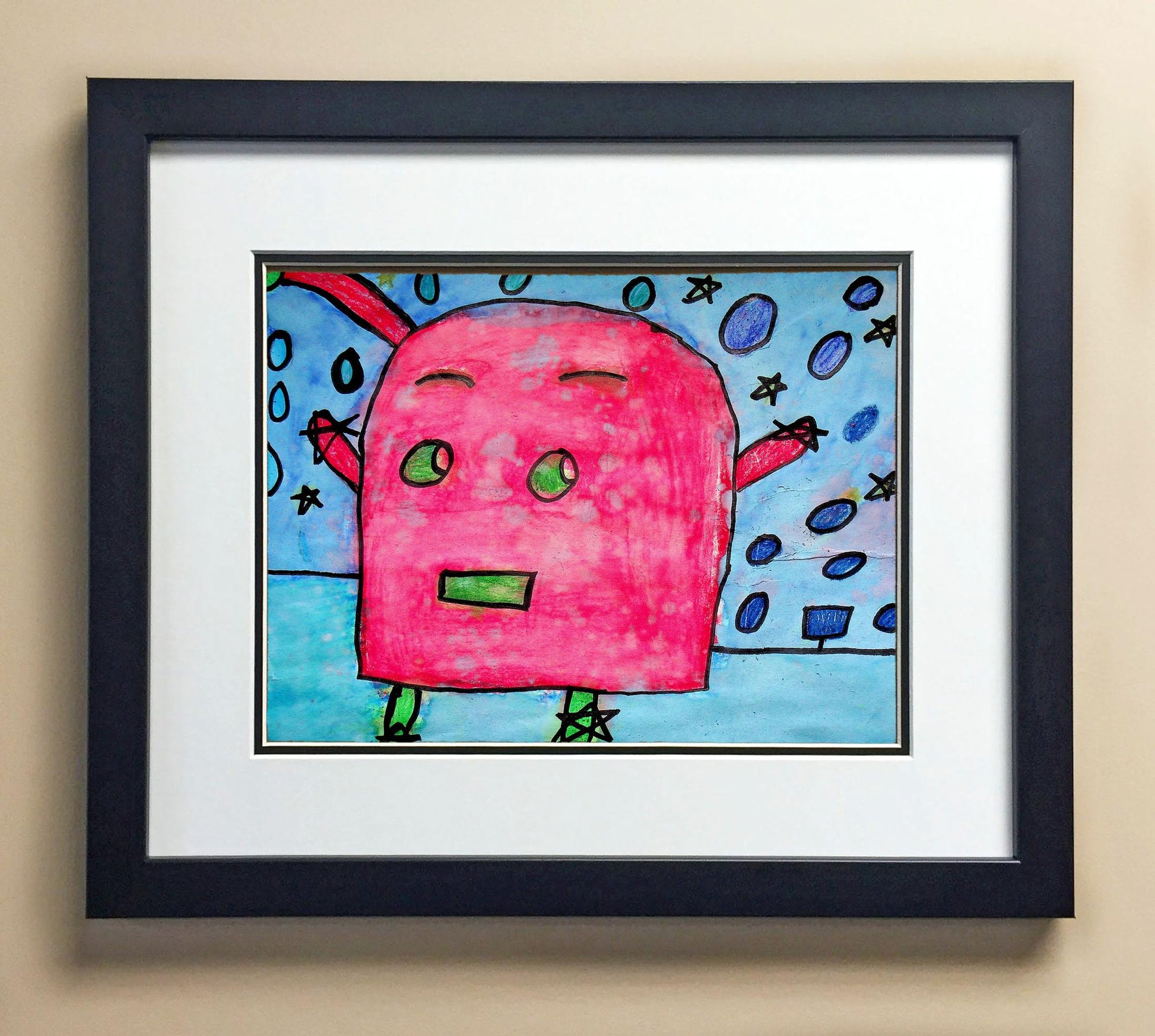 Included with the purchase is the Students Artwork, Frame, double matboard, shatter proof plexiglass, and a ready to hang backerboard with turnbuttons