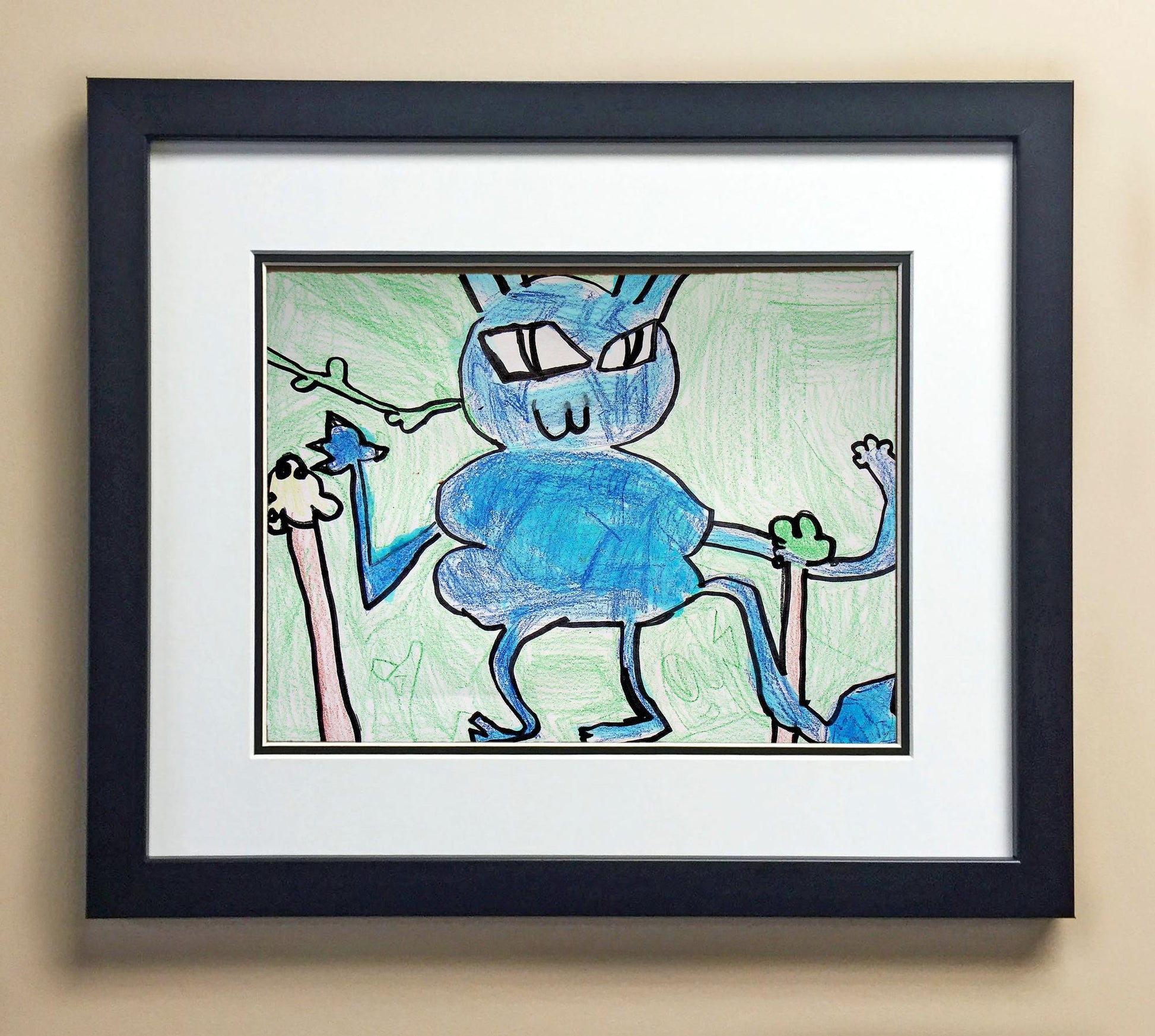 Included with the purchase is the Students Artwork, Frame, double matboard, shatter proof plexiglass, and a ready to hang backerboard with turnbuttons