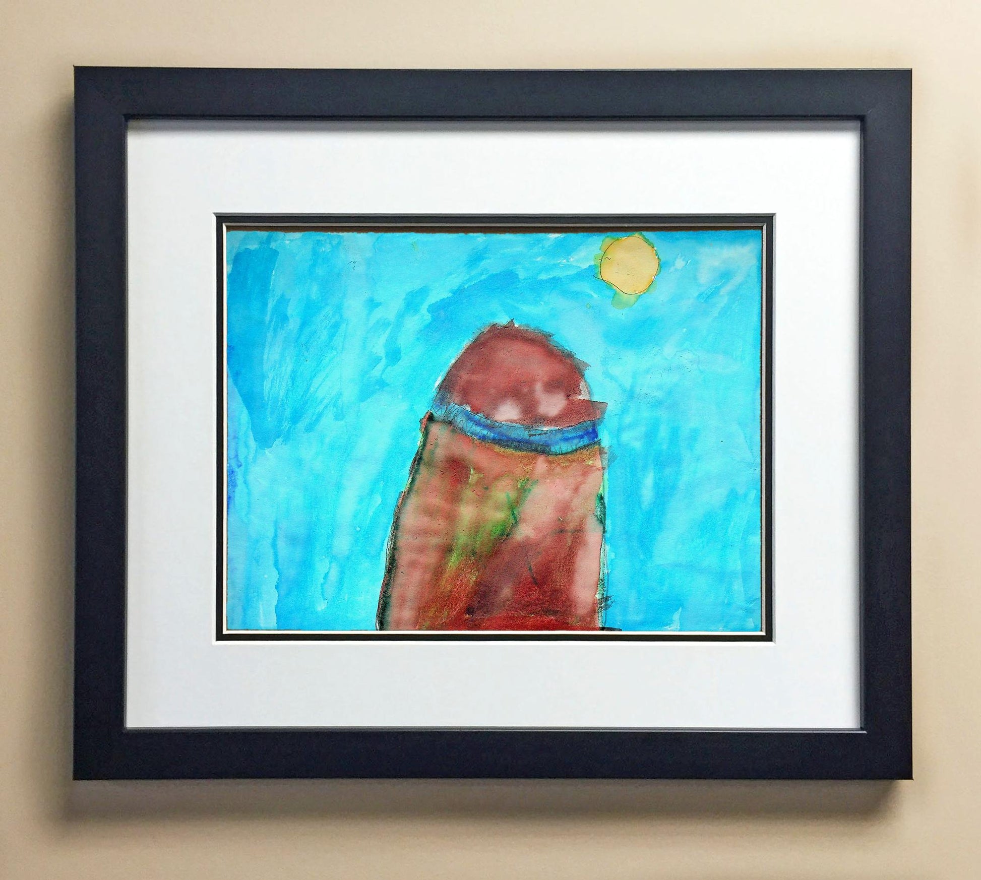 Included with the purchase is the Students Artwork, Frame, double matboard, shatter proof plexiglass, and a ready to hang backerboard with turnbuttons