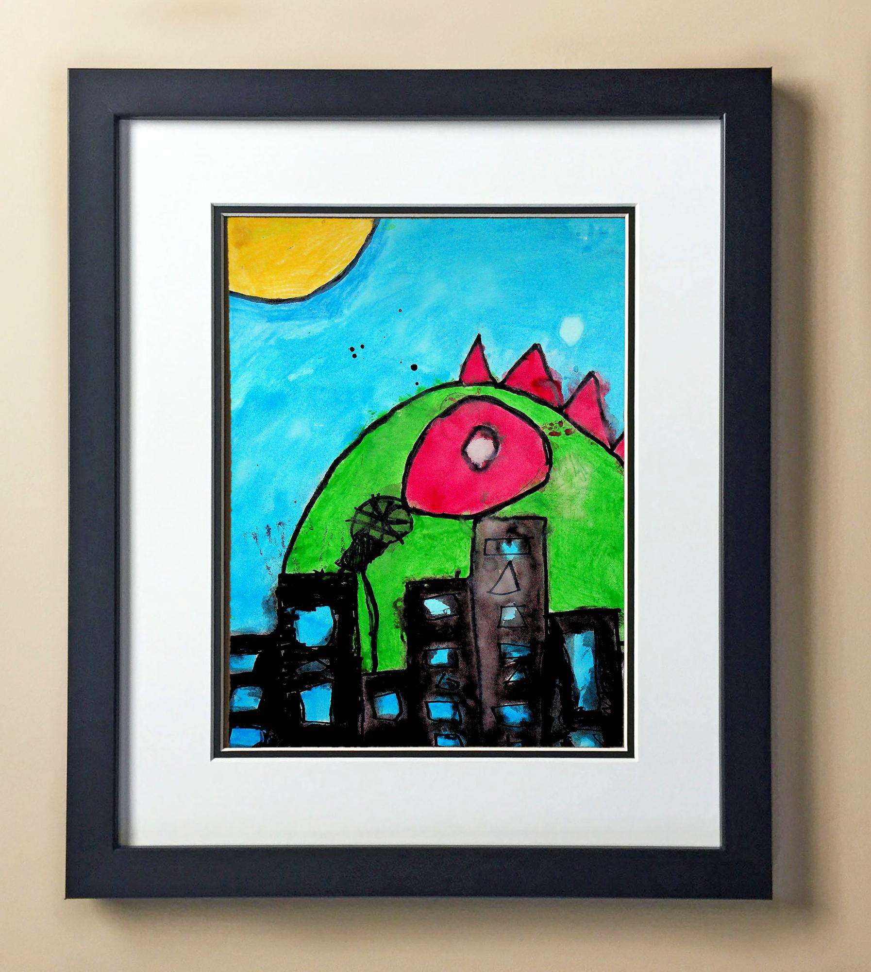 Included with the purchase is the Students Artwork, Frame, double matboard, shatter proof plexiglass, and a ready to hang backerboard with turnbuttons