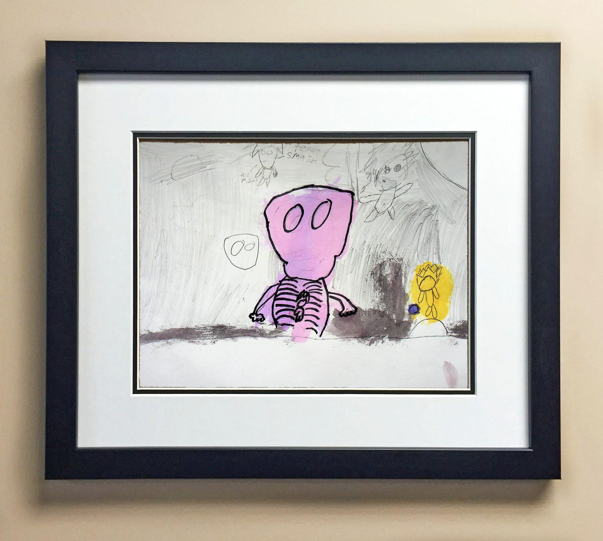 Included with the purchase is the Students Artwork, Frame, double matboard, shatter proof plexiglass, and a ready to hang backerboard with turnbuttons