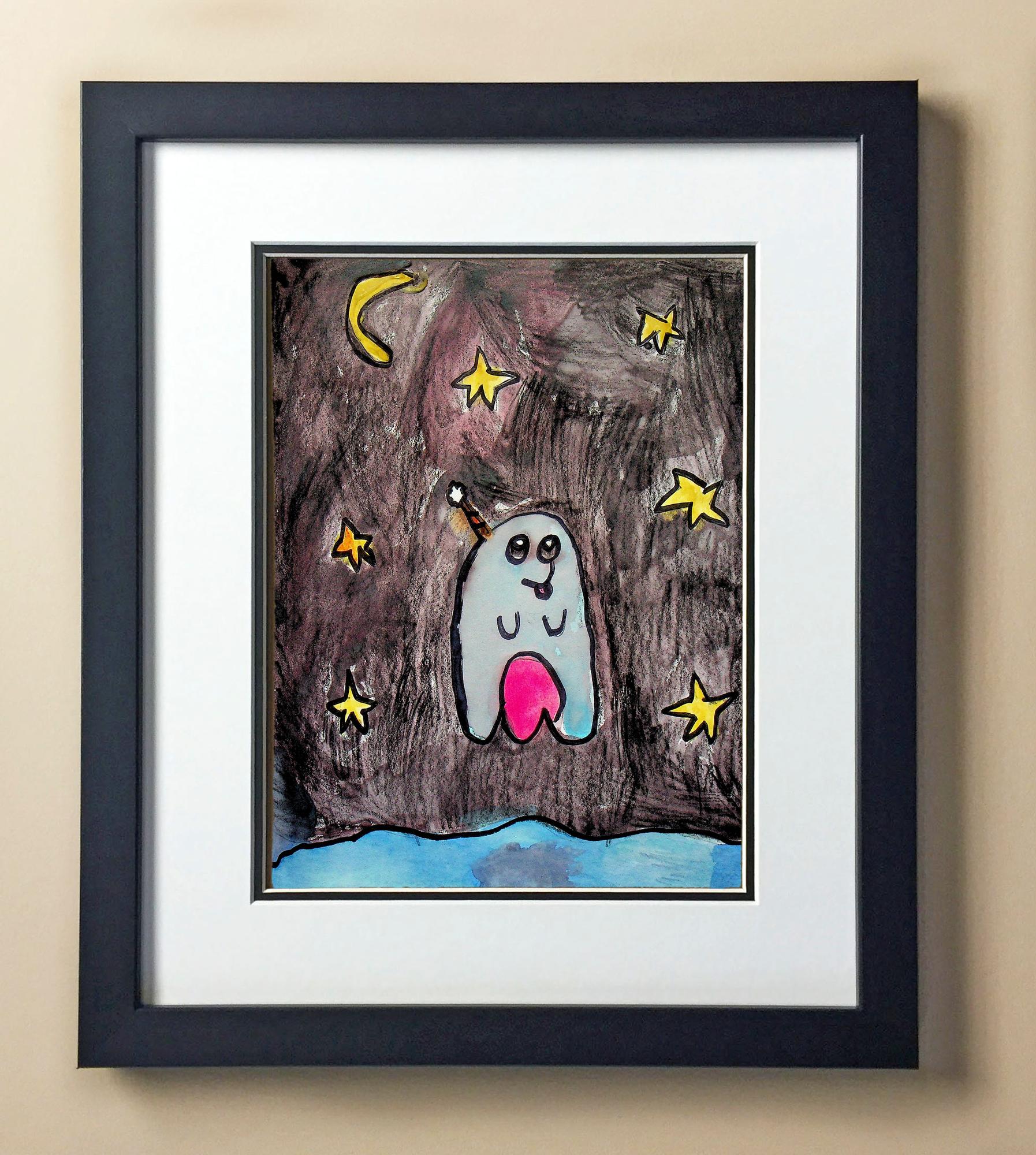 Included with the purchase is the Students Artwork, Frame, double matboard, shatter proof plexiglass, and a ready to hang backerboard with turnbuttons