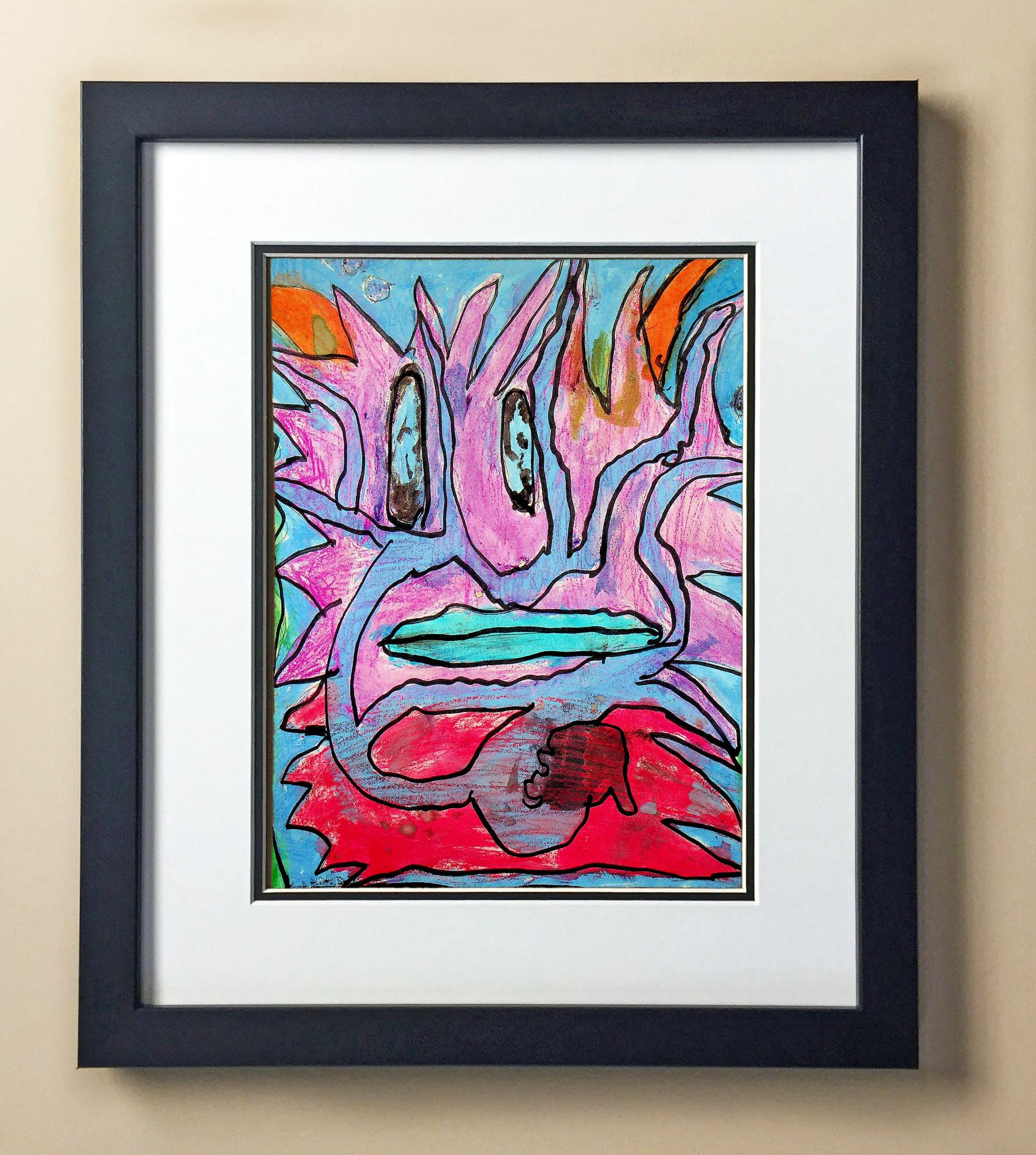 Included with the purchase is the Students Artwork, Frame, double matboard, shatter proof plexiglass, and a ready to hang backerboard with turnbuttons