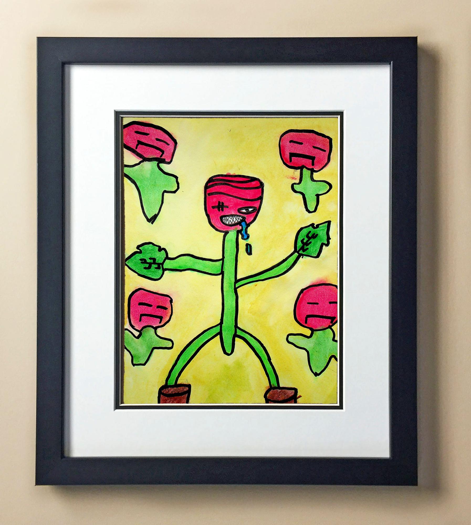 Included with the purchase is the Students Artwork, Frame, double matboard, shatter proof plexiglass, and a ready to hang backerboard with turnbuttons
