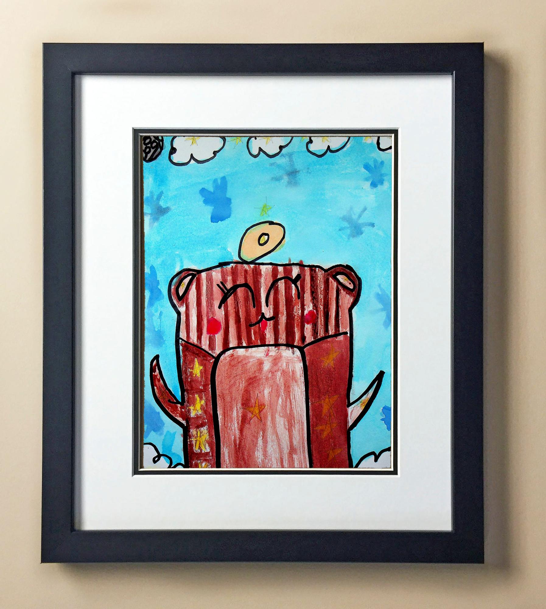 Included with the purchase is the Students Artwork, Frame, double matboard, shatter proof plexiglass, and a ready to hang backerboard with turnbuttons
