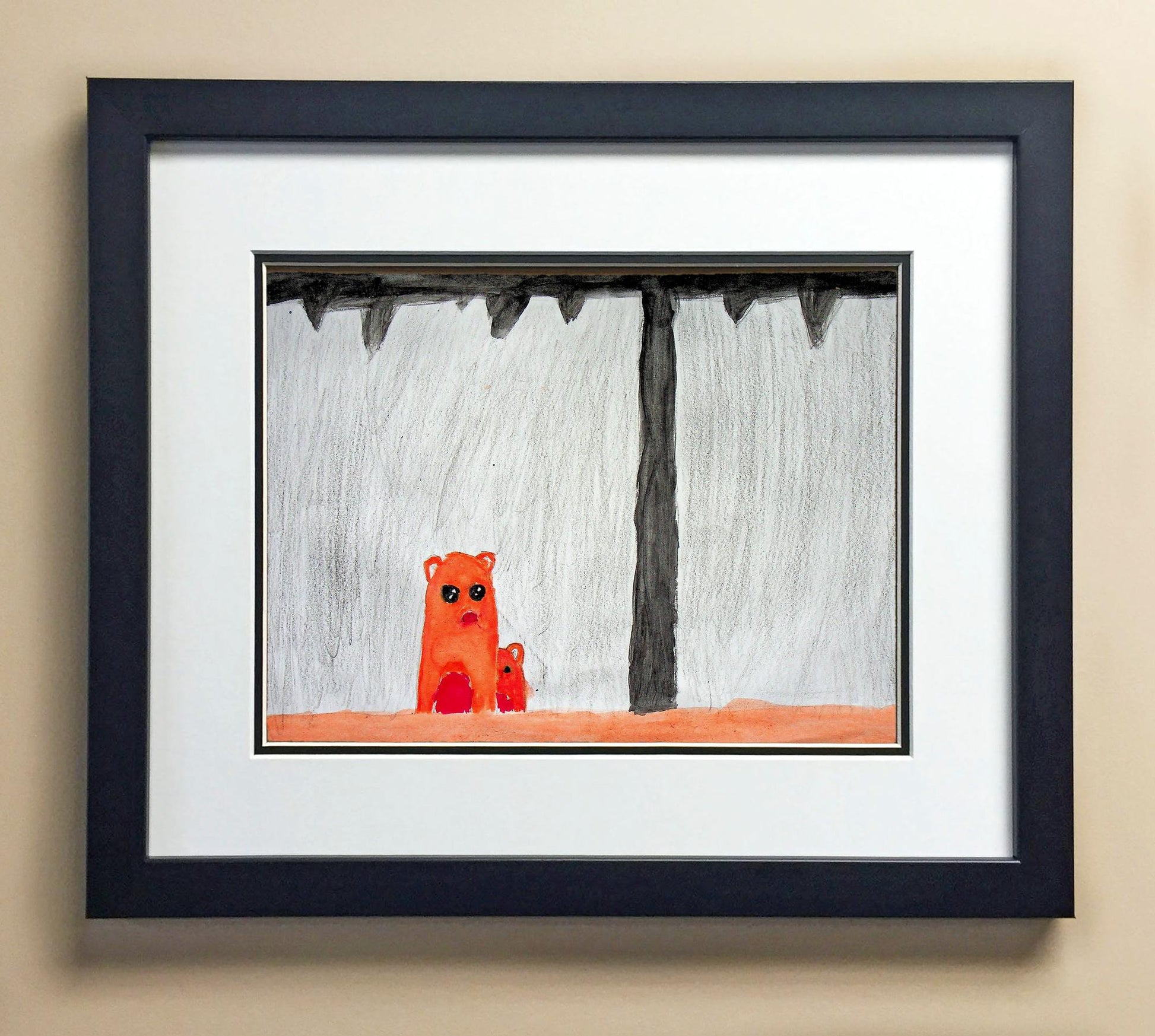 Included with the purchase is the Students Artwork, Frame, double matboard, shatter proof plexiglass, and a ready to hang backerboard with turnbuttons