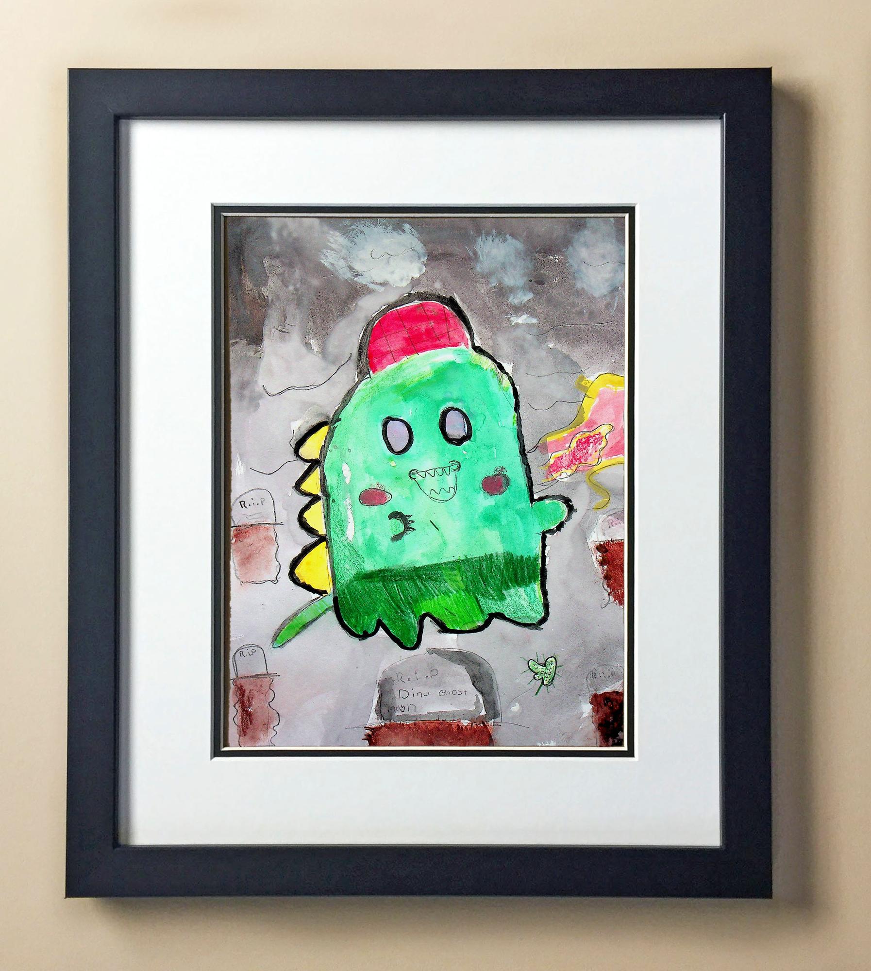 Included with the purchase is the Students Artwork, Frame, double matboard, shatter proof plexiglass, and a ready to hang backerboard with turnbuttons
