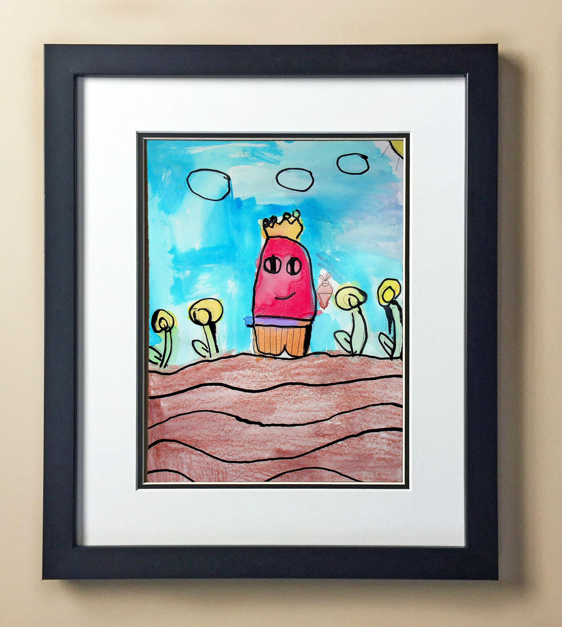 Included with the purchase is the Students Artwork, Frame, double matboard, shatter proof plexiglass, and a ready to hang backerboard with turnbuttons