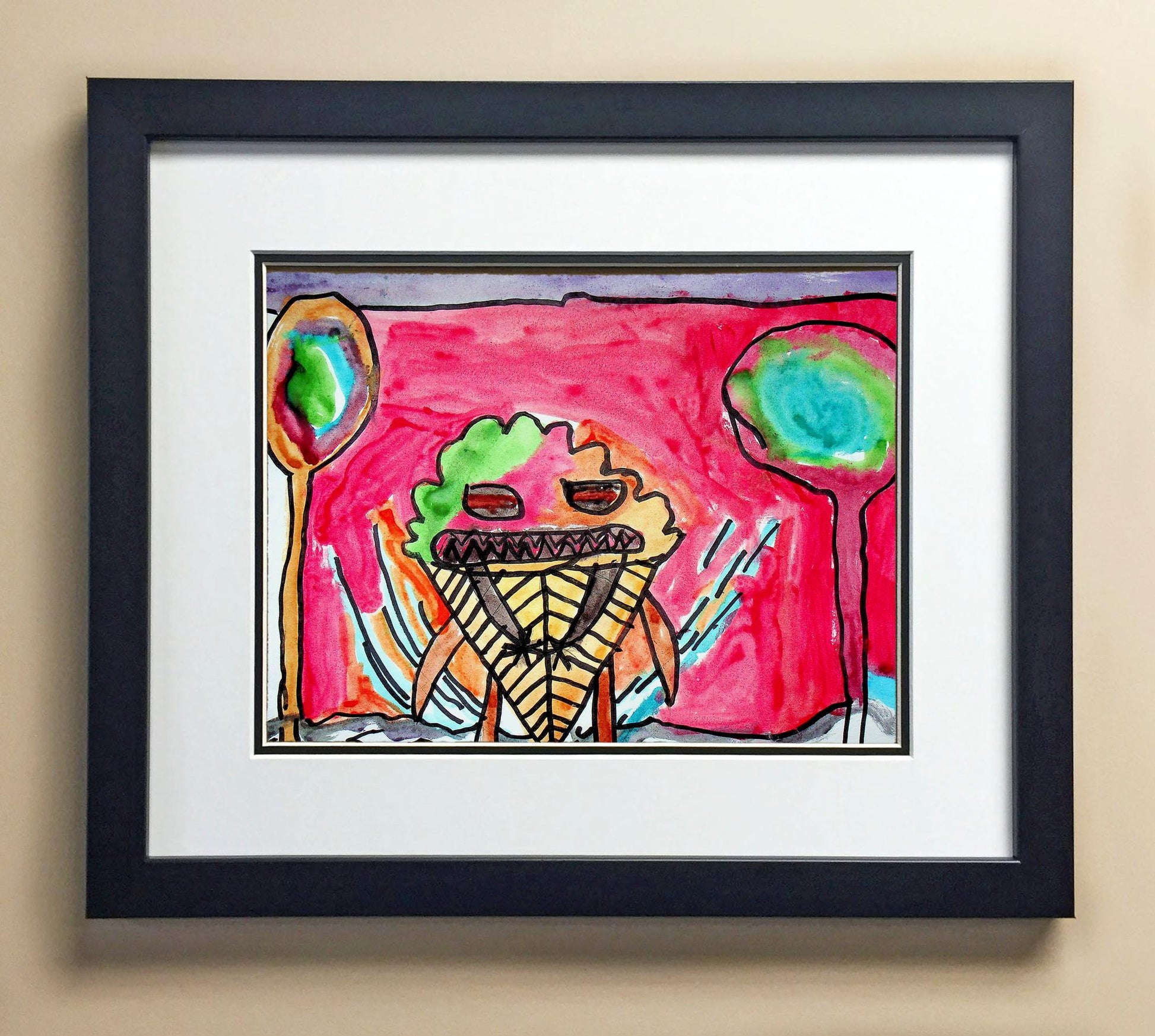 Included with the purchase is the Students Artwork, Frame, double matboard, shatter proof plexiglass, and a ready to hang backerboard with turnbuttons