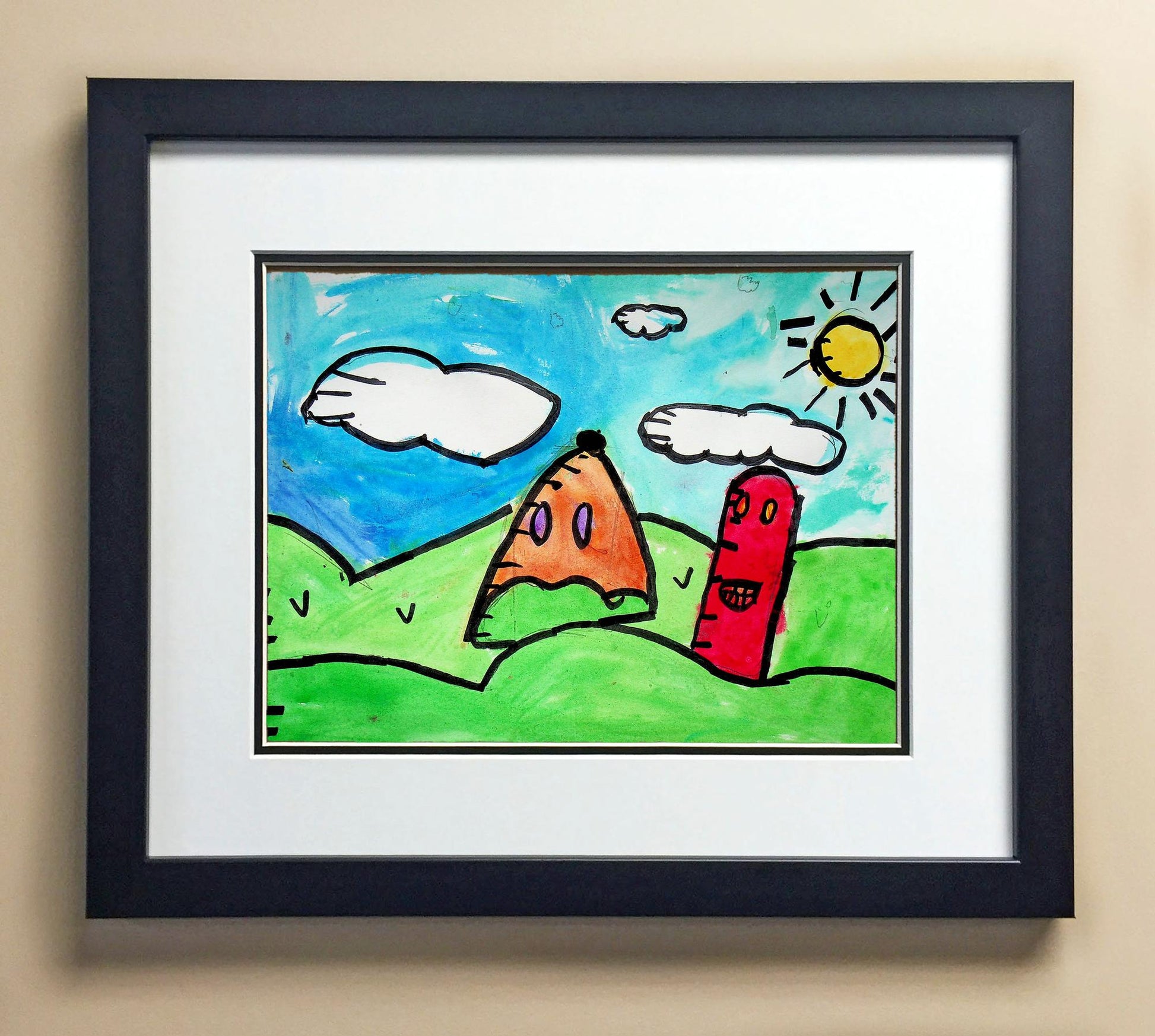 Included with the purchase is the Students Artwork, Frame, double matboard, shatter proof plexiglass, and a ready to hang backerboard with turnbuttons