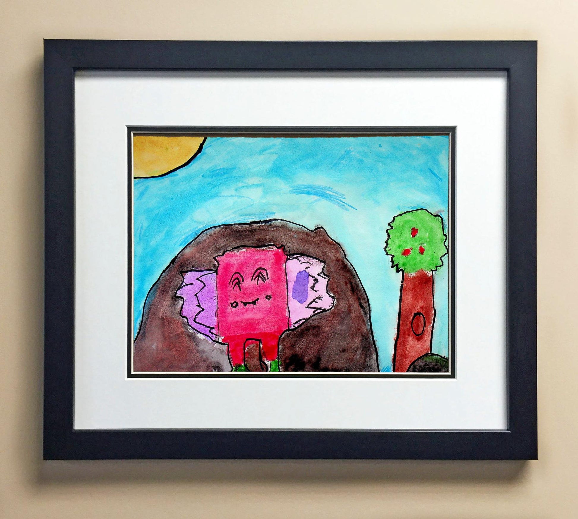 Included with the purchase is the Students Artwork, Frame, double matboard, shatter proof plexiglass, and a ready to hang backerboard with turnbuttons